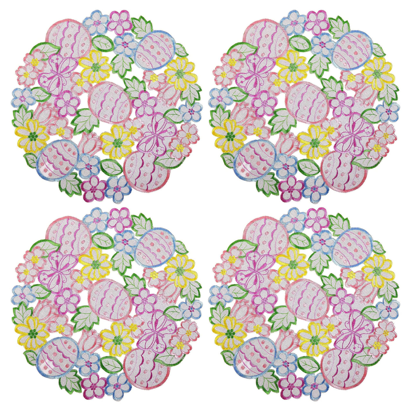 Easte Egg Placemat 14'' Set Of 4 Cutwork Embroidered Spring Flowery Floral Eggs Dresser Scarf For Home Kitchen Dining Spring Hol