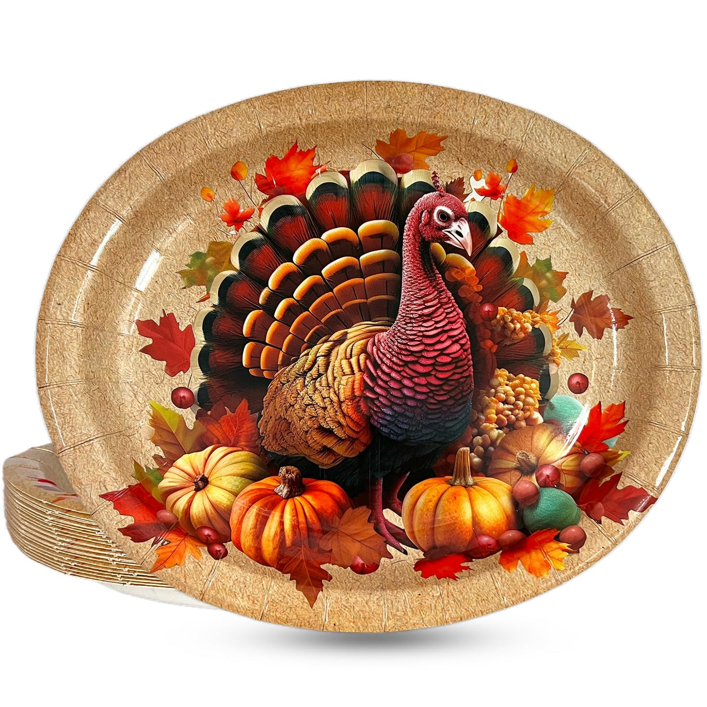 Thanksgiving Paper Plates Disposable Oval 24Pcs Large Turkey Thanksgiving Plates Table Decor 10 x 12 Fall Leaves Dinnerware Autumn Party Decorations