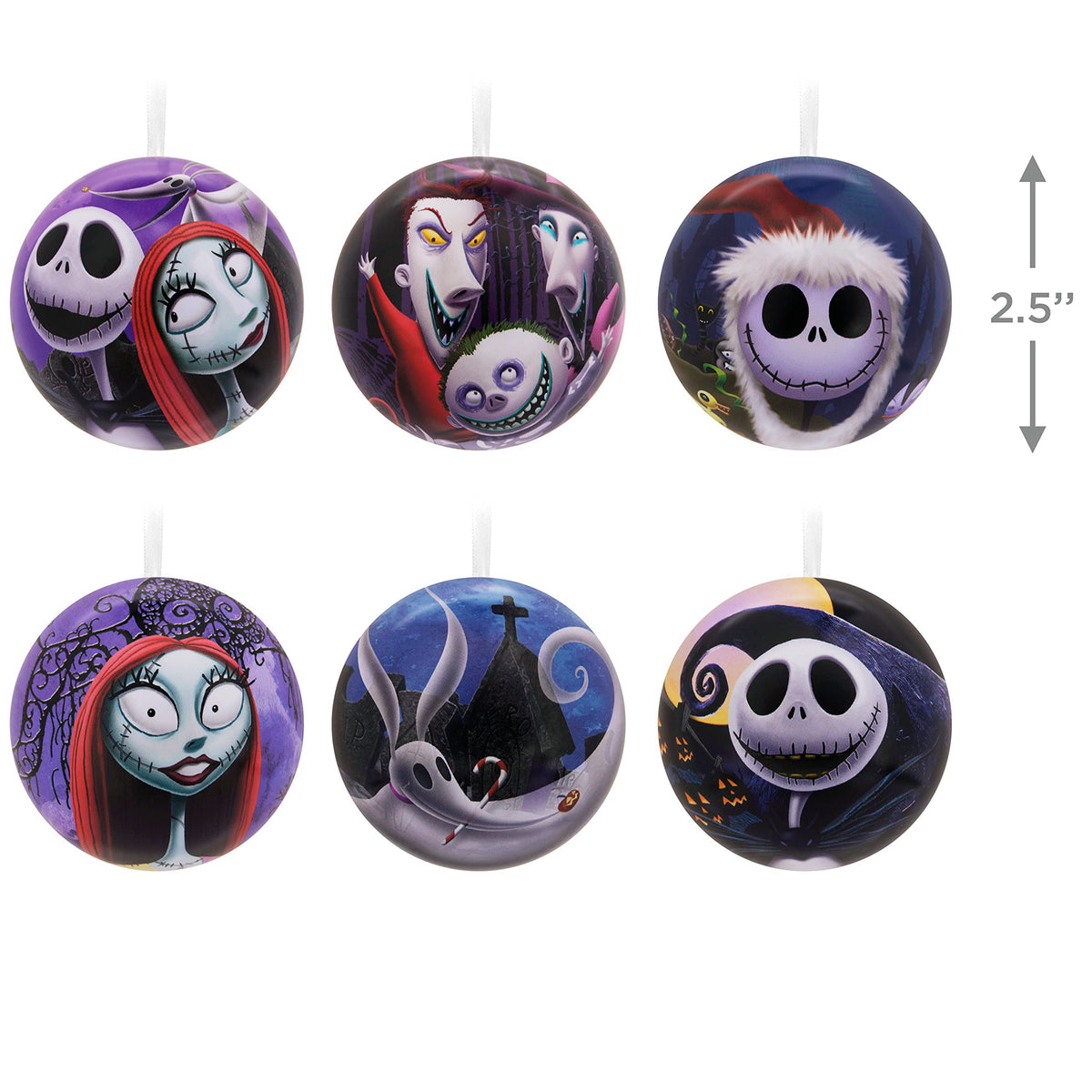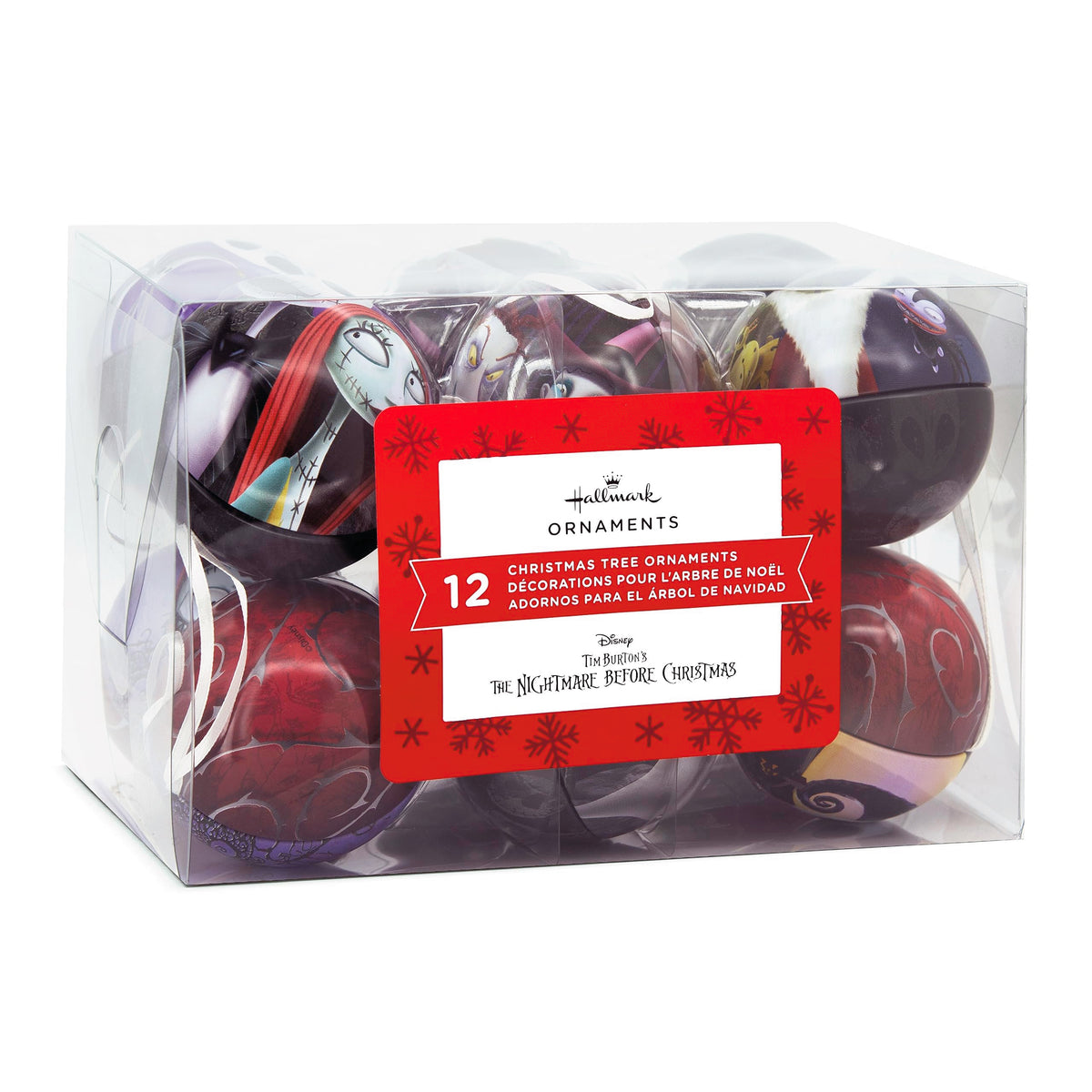 Scare up some fun this holiday season when you trim the tree with this set of 12 tin ball Christmas tree ornaments. Double-sided designs feature stylized images of Jack Skellington, Sally, Zero, and Lock, Shock and Barrel on one side, and patterns inspired by Disney Tim Burton's The Nightmare Before Christmas on the other side. Set includes two ornaments each of six designs. Hallmark Ornaments are a great way to commemorate hobbies, life events and individual interests in entertainment, sports and more. Each festive and collectible ornament is perfect for sharing with family and friends.