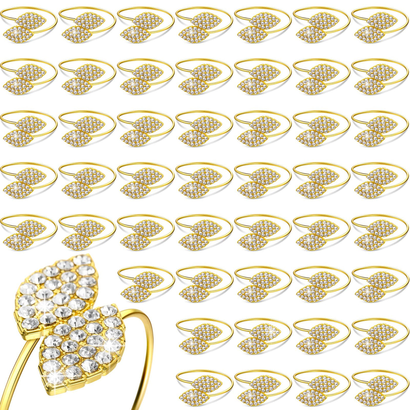 Hotop 250 Pcs Napkin Rings Gold Table Decorations, Elegant Bling Leaves Napkin Rings, Rhinestone Guest Towels Buckle for Wedding