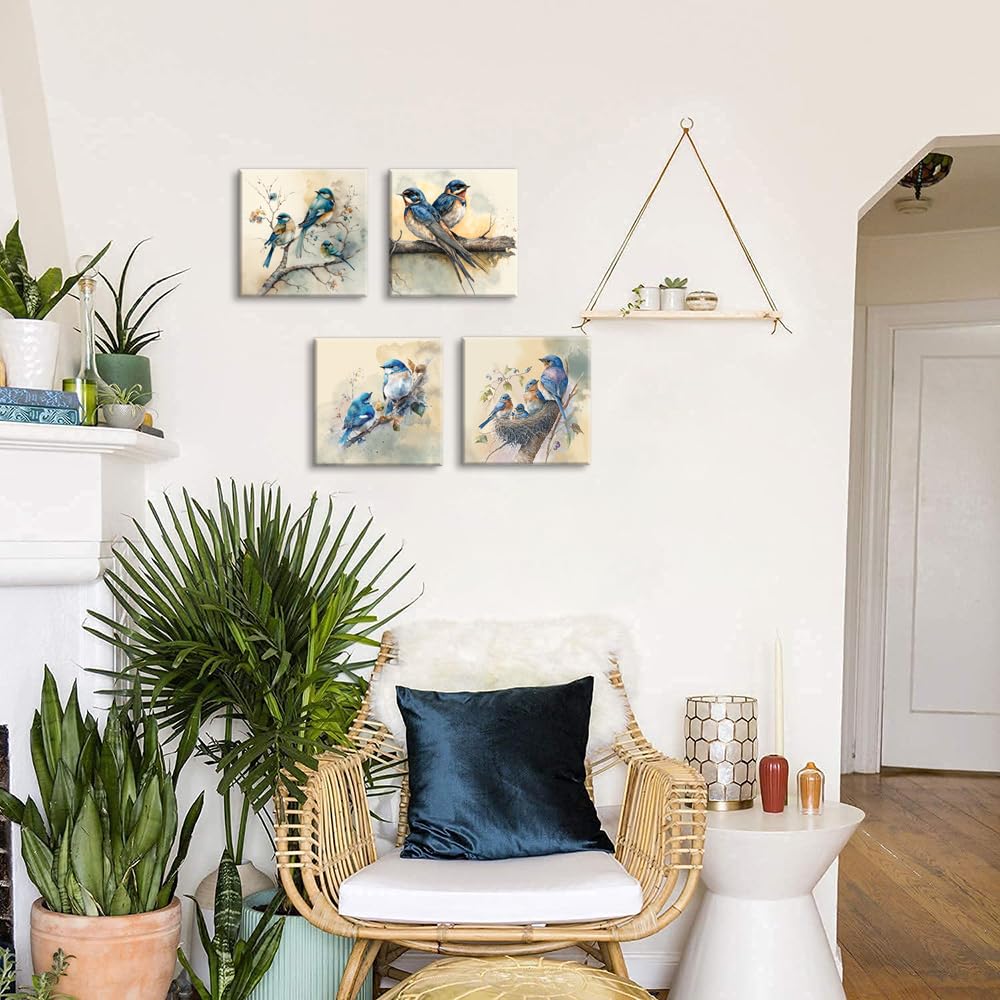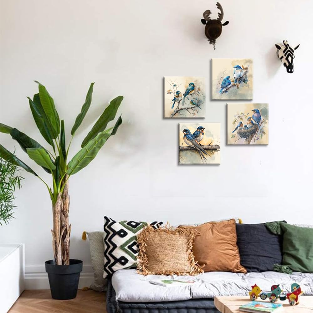 • Q: What is the main theme of this wall art? A: The main theme of the Lasdel Blue Bird Stretched Canvas Wall Art features a beautiful and lively animal family, making it a perfect decorative piece for various spaces.