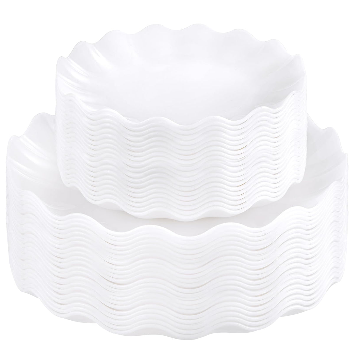 LIYH 50 Pcs White Scalloped Plastic Plates Reusable - Unbreakable Plastic Plates for Weddings Party Outdoor Picnics Dishwasher Safe BPA Free (25Guests)