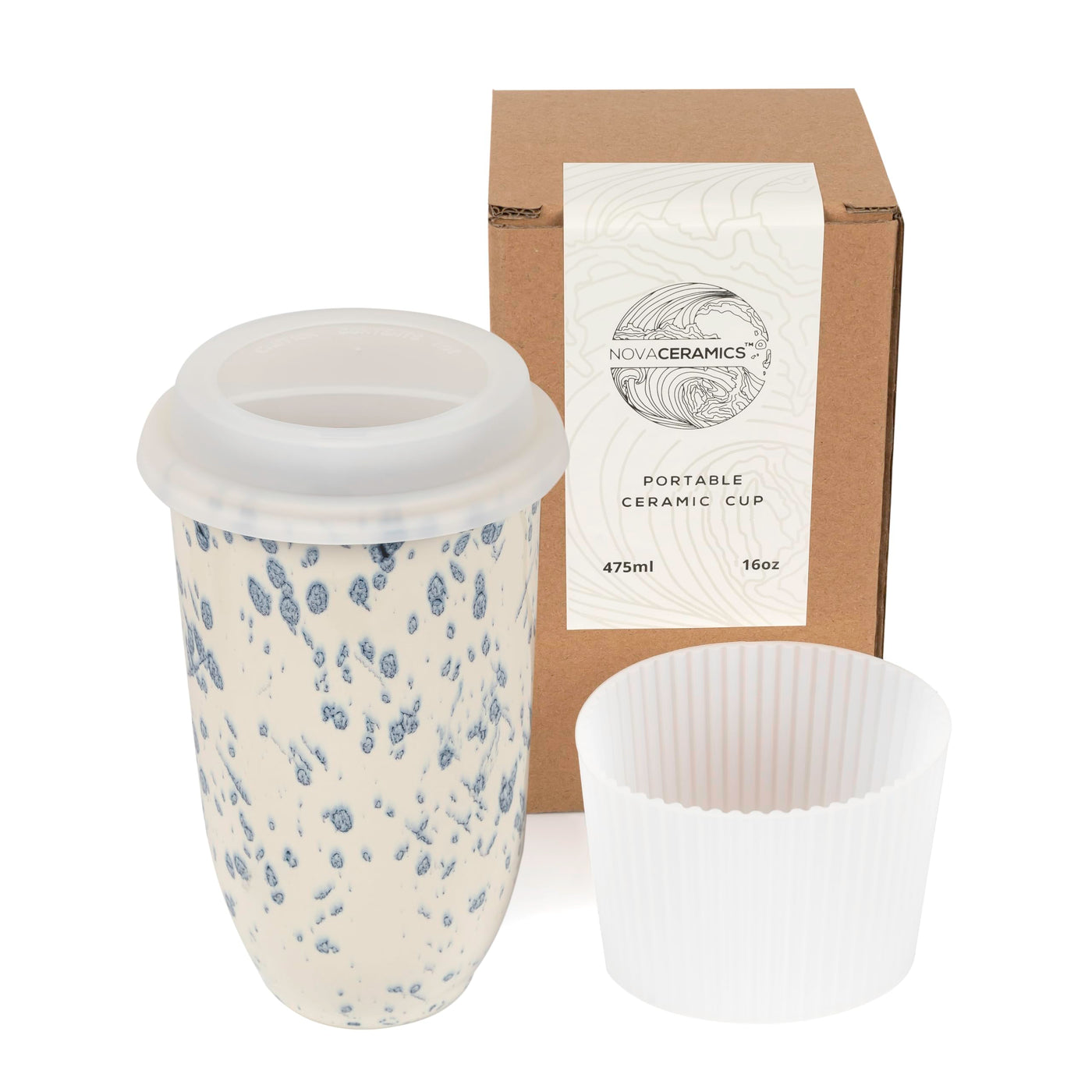 Introducing the Nova Ceramics Travel Mug, the perfect accessory to make tumbler mug you can enjoy your insulated coffee tumbler coffee just the way you like it without any compromises in taste. Our ceramic coffee mug with lid replicates the coffee shop feel, preserving the flavor of your favorite tea drinks without any stainless steel or plastic undertones. With a travel coffee mug capacity of 16oz and handle dimensions of 5.7 x 3.2 inches, they fit perfectly in most coffee ceramic machines and car cup holders. Whats more, each 16 oz tumbler is unique and has its own individual detailing, making them one-of-a-kind coffee tumblers with lids. You dont have to worry about maintenance either, because our tumblers are dishwasher safe and microwave friendly. Embrace a more sustainable lifestyle and reduce waste from single-use paper cups by taking the Nova Ceramics Travel Mug with you everywhere. With its reusable and eco-friendly form, youll never have to go back to disposable cups again!