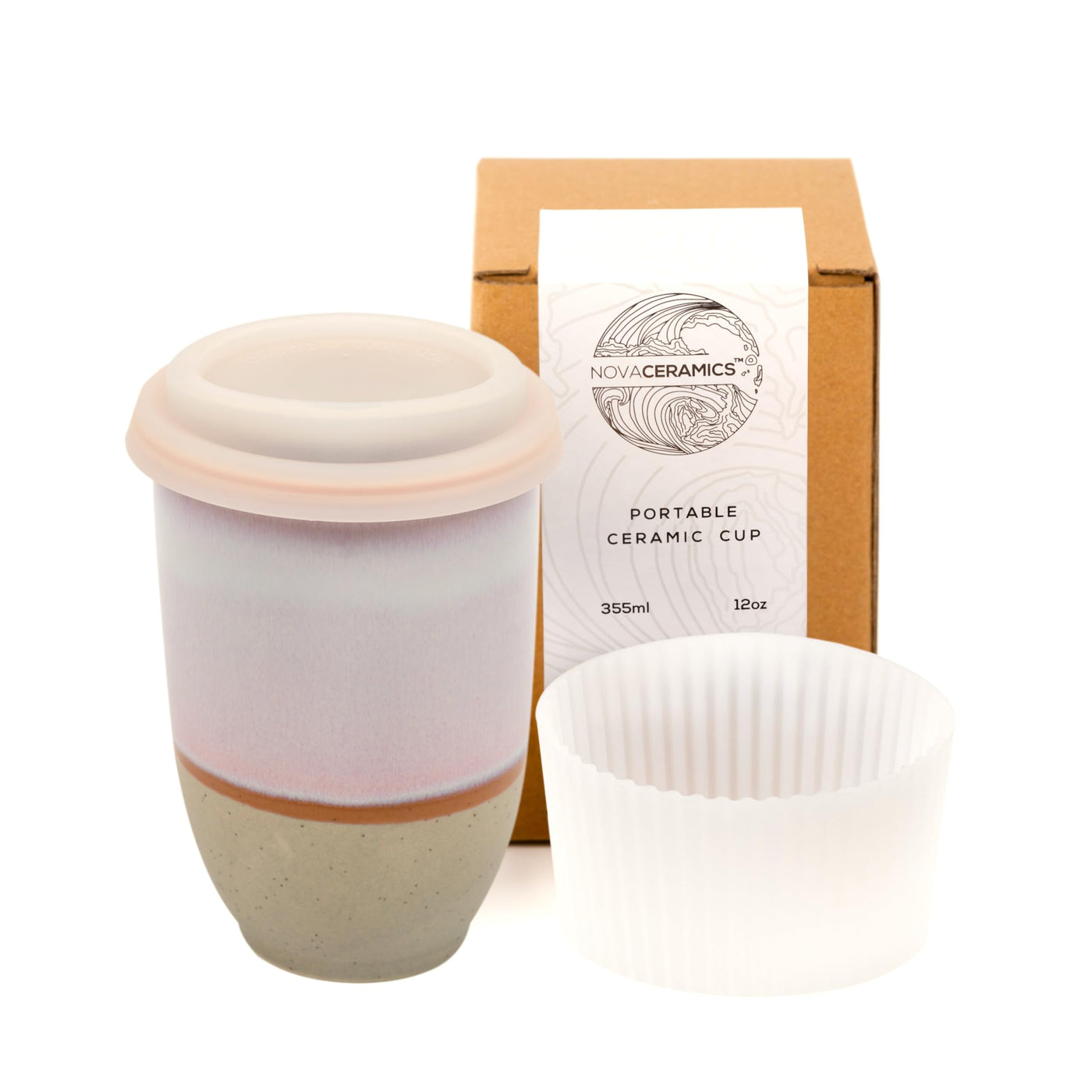 Introducing the Nova Ceramics Travel Mug, the perfect accessory to make tumbler mug you can enjoy your insulated coffee tumbler coffee just the way you like it without any compromises in taste. Our ceramic coffee mug with lid replicate the coffee shop feel, preserving the flavor of your favorite tea drinks without any stainless steel or plastic undertones. With a small travel coffee mug capacity of 12oz tumbler ounces and handle dimensions of 4.7 x 3.1 inches, they fit perfectly in most coffee ceramic machines and car cup holders. Whats more, each 12 oz tumbler is unique and has its own individual detailing, making them one-of-a-kind coffee tumblers with lids . You dont have to worry about maintenance either, because our tumblers are dishwasher safe and microwave friendly. Embrace a more sustainable lifestyle and reduce waste from single-use paper cups by taking the Nova Ceramics coffee Travel Mug with you everywhere. With its reusable and eco-friendly form, youll never have to go back to disposable cups again!