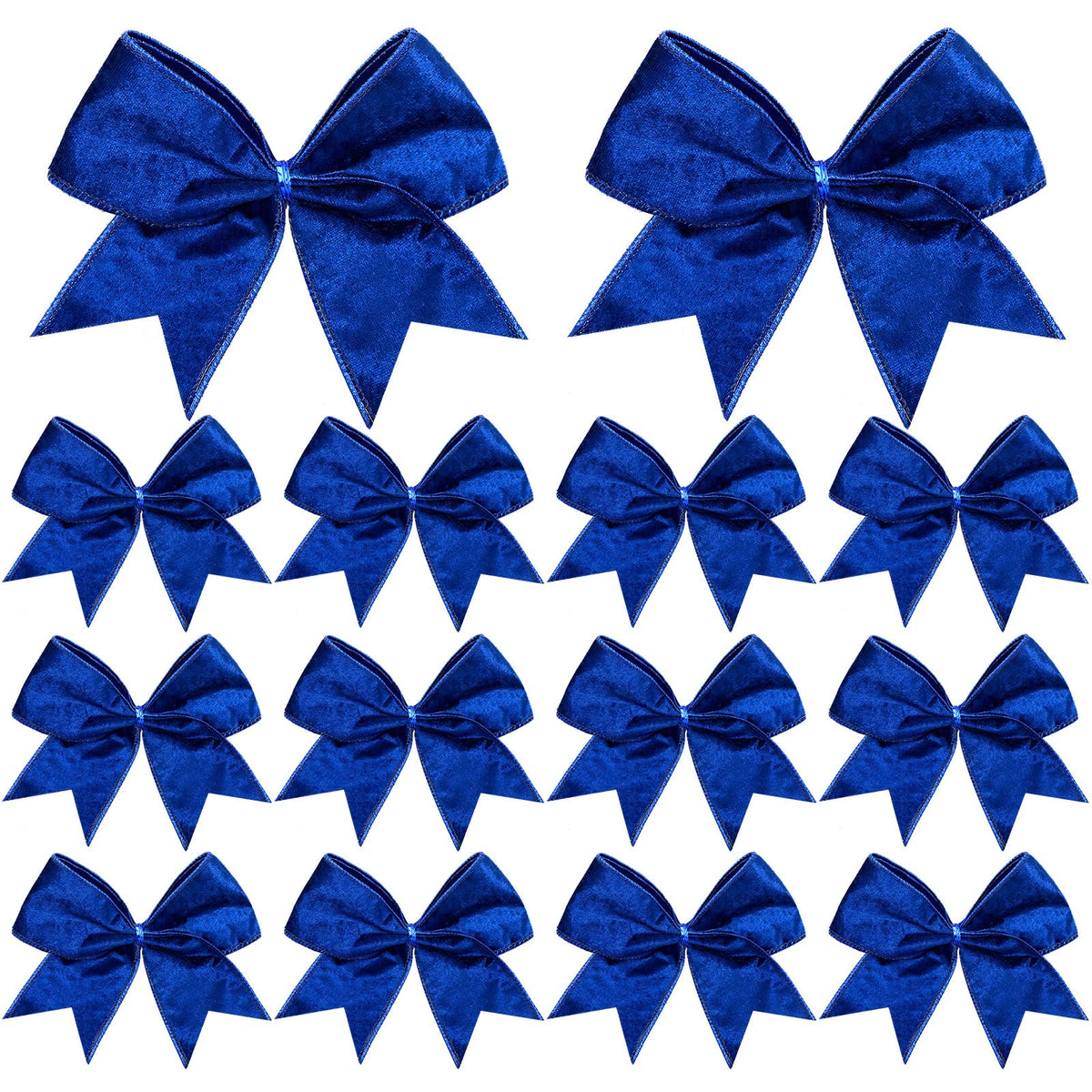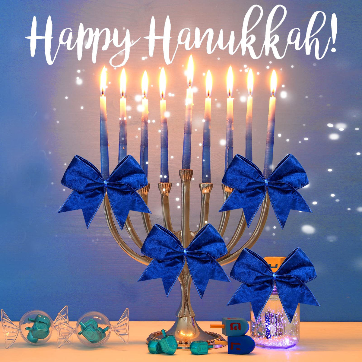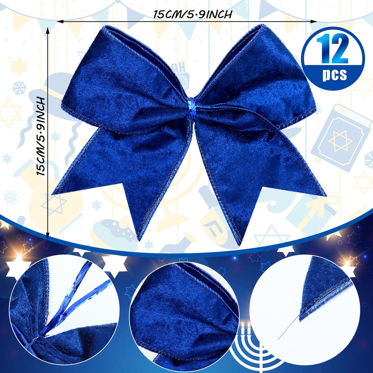 Panelee 12 Pcs Blue Velvet Christmas Bows 6 x 6 in Wreath Bow Christmas Tree Decorations Ornaments for Hanukkah Xmas Tree Topper