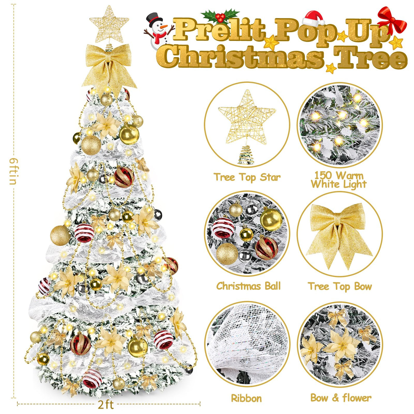 Pop Up Christmas Tree with Lights, 6FT Collapsible Artificial Christmas Tree with 8 Lighting Modes and Remote Control Timer, Pre