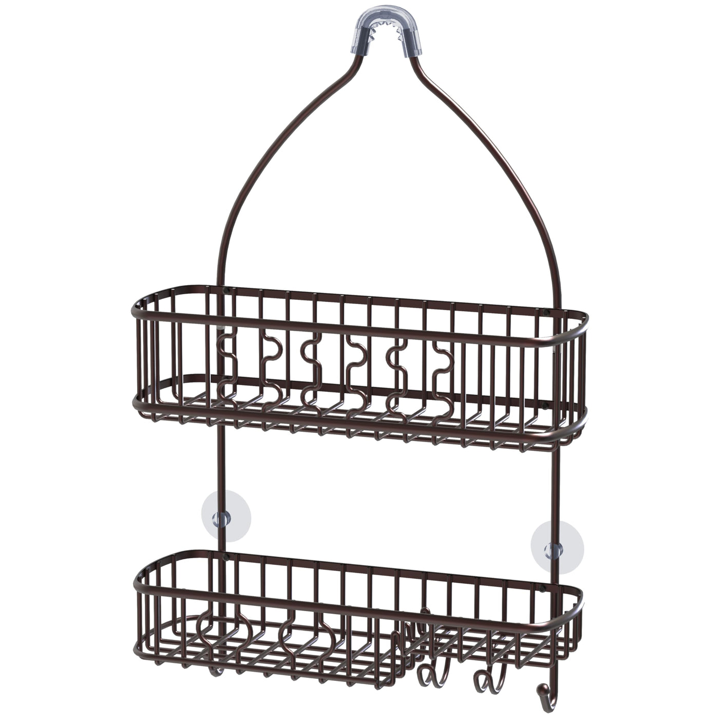 • Q: Does the caddy have any hooks for additional storage? A: Yes, the caddy includes four hooks that can be used to hang items such as razors, loofahs, or washcloths.