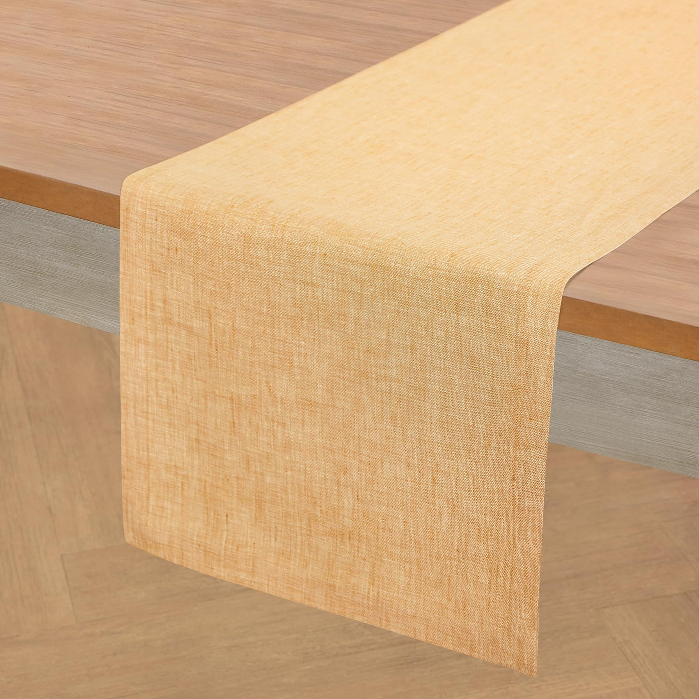 Solino Home Linen Table Runner 144 Inches Long - Athena, 100% Pure Linen Golden Nugget Table Runner 14 x 144 Inch for Dining, Fa