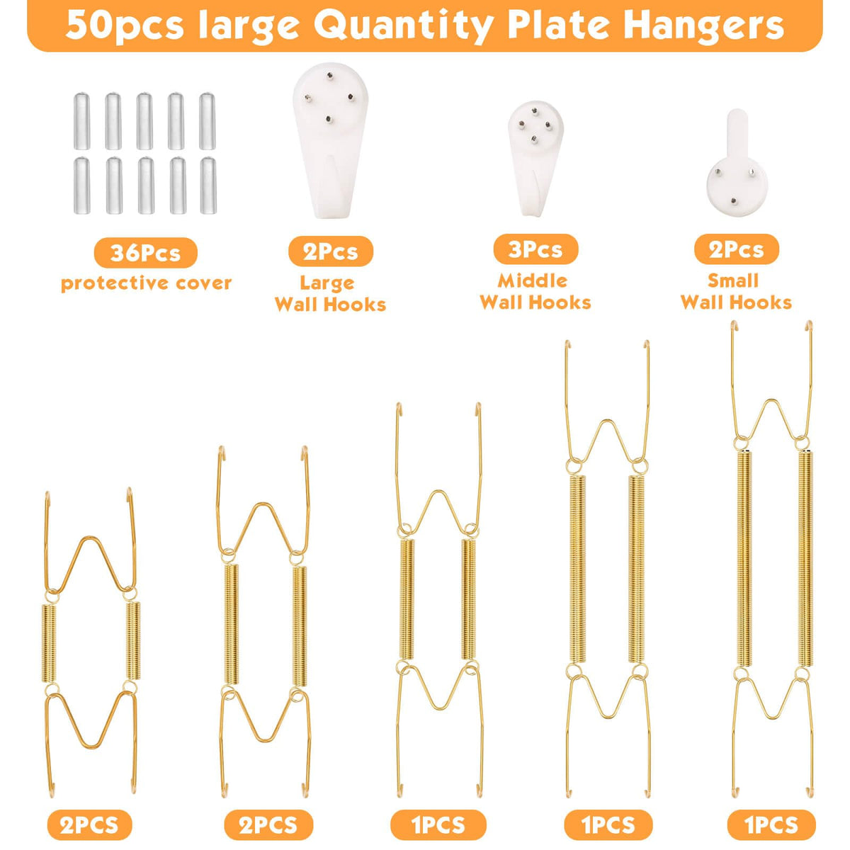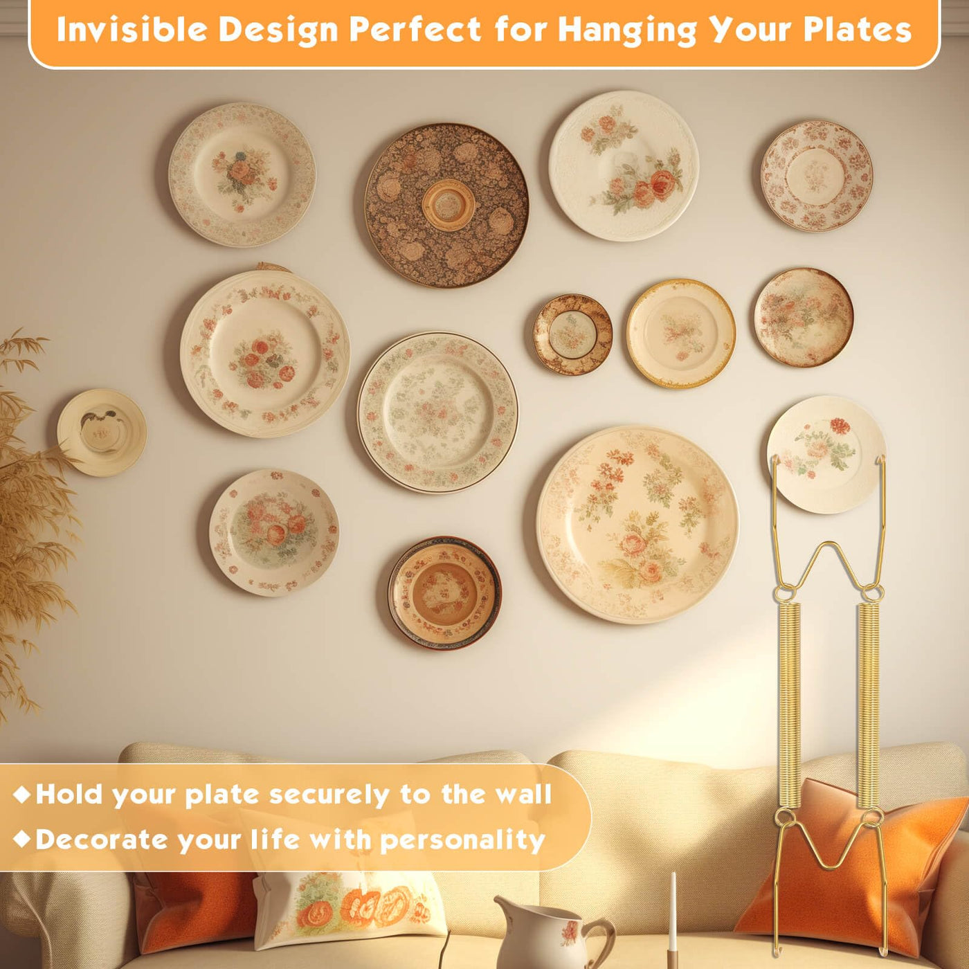 Tetutor 7 pcs Plate Hangers for the Wall, 4/6/8/10/12 Inch Invisible Decorative Wall Plate Hangers, Stainless Steel Plate Wall Hangers for Display Various Sizes with Wall Hooks for Decorative Plate