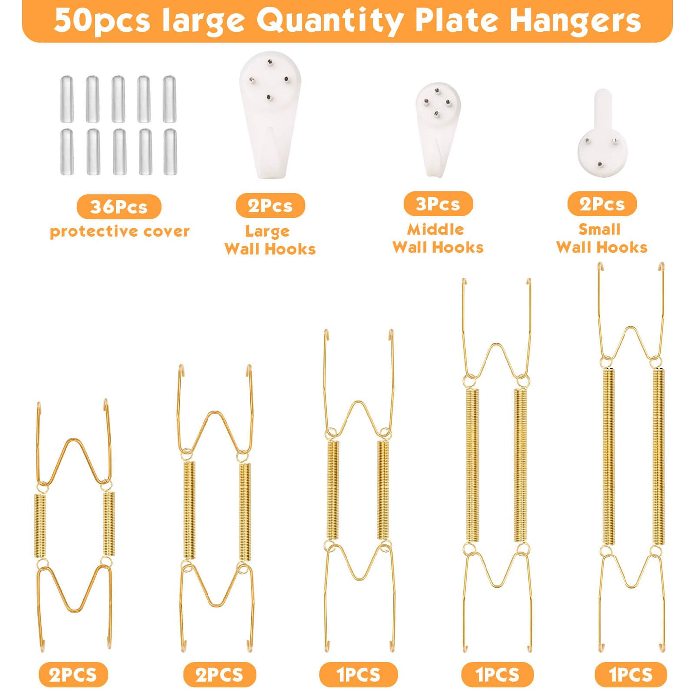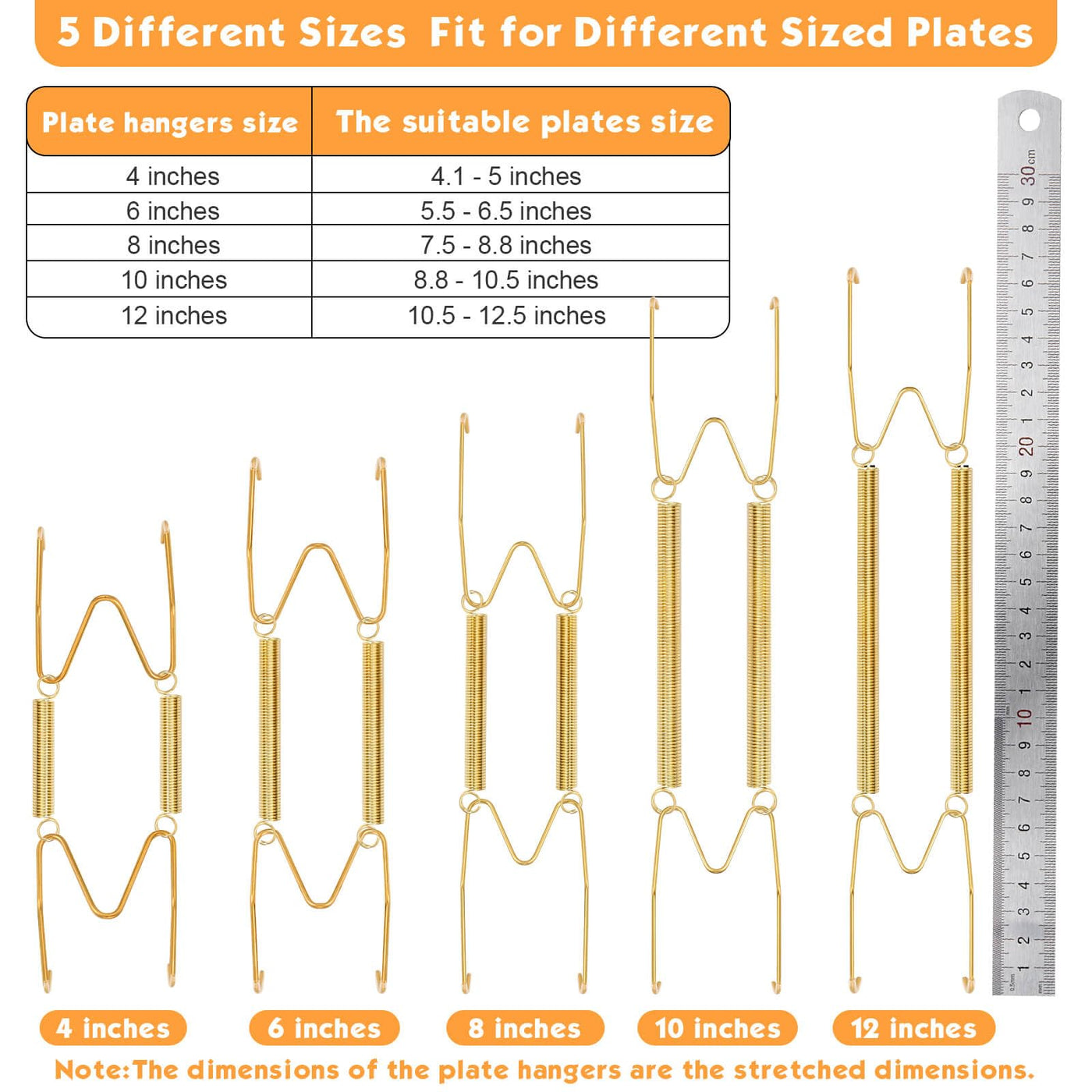 Tetutor 7 pcs Plate Hangers for The Wall, 4/6/8/10/12 Inch Invisible Decorative Wall Plate Hangers, Stainless Steel Plates Walls