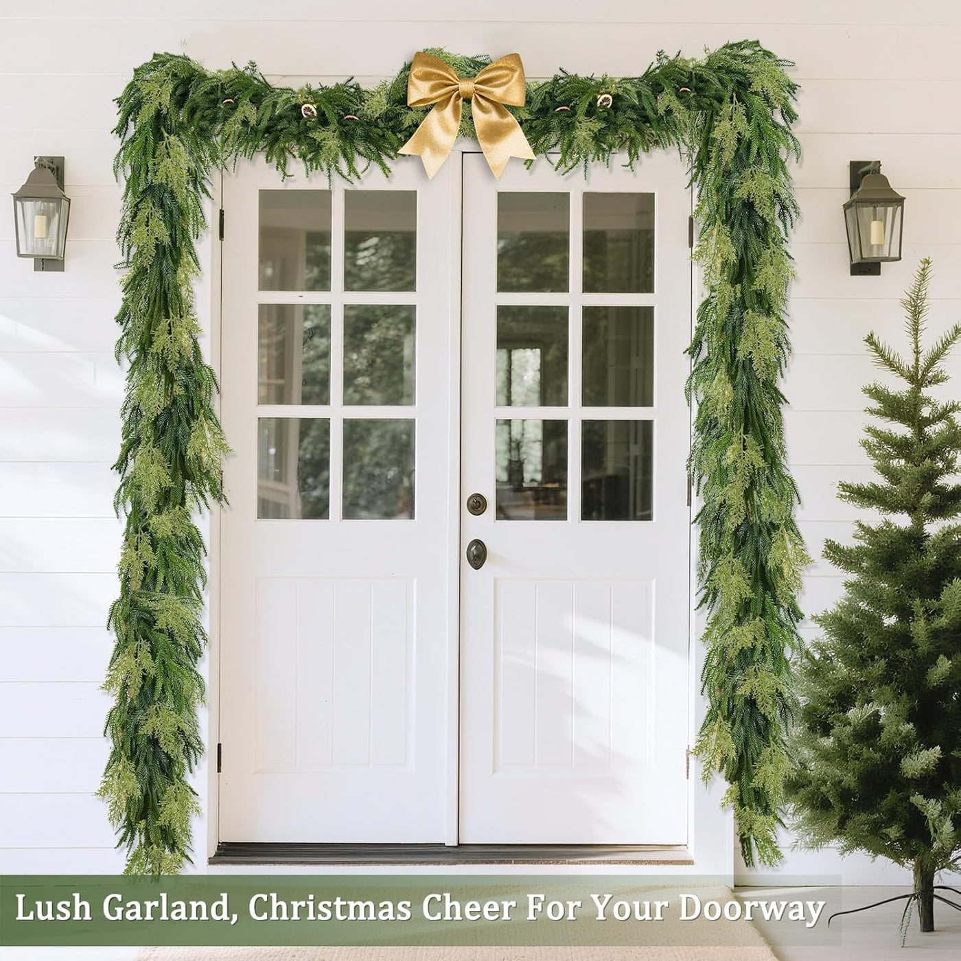 Thicker&Lush - Mixed Pine&Cedar - 6Ft by 12 Inch Christmas Garland Norfolk Pine Garland,Real Touch Cedar Garland,Realistic Soft