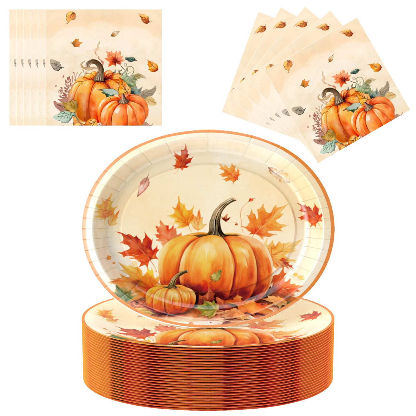 UODBUYO 100Pcs Thanksgiving Oval Paper Plates and Napkins Set,10 x 12 Large Disposable Plates for Thanksgiving Party