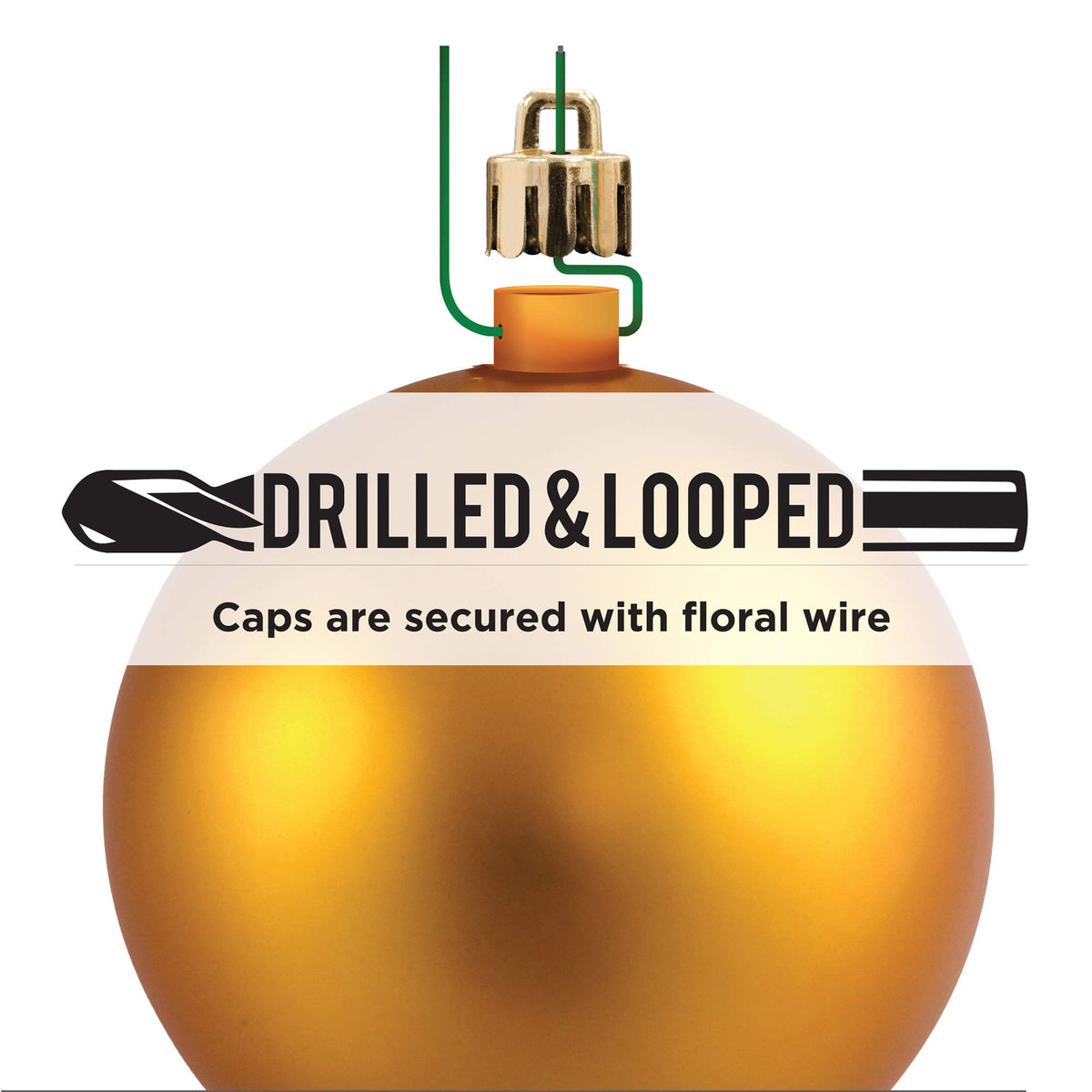 Vickerman 10 Red Glitter Ball Ornament. This ornament features glitter finish that will add shimmer to any holiday decorating project. This item is made from shatterproof plastic for extended protection from breaking. The cap is drilled and looped with floral wire to ensure it is reliable and ready to hang. This unique ornament is an exceptional addition to any collection as it matches well with a variety of d cor and goes perfectly on a holiday tree.