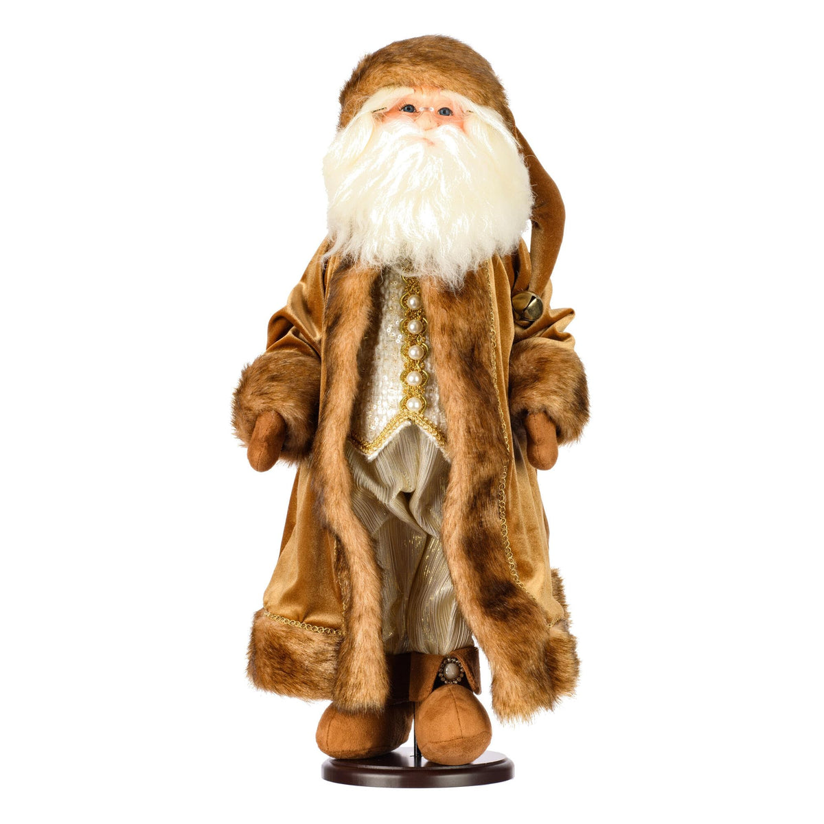 Vickerman 24 Mocha Velvet Santa Doll with Stand. This Santa has Glasses, Stand is Removeable.