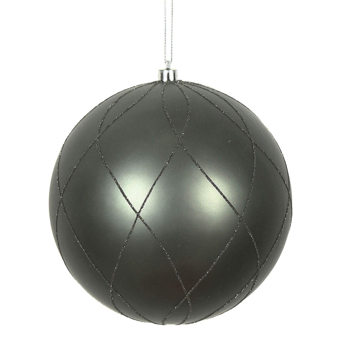 Vickerman 6 Pewter Matte and Glitter Swirl Ball Ornament. This item features a swirl pattern with glitter to add texture to any holiday decorating project as well as a drilled and wired secure cap for reliable hanging. This unique ornament is an exceptional addition to any collection as it matches well with a variety of d cor and goes perfectly on a holiday tree. Includes 3 ornaments per pack.