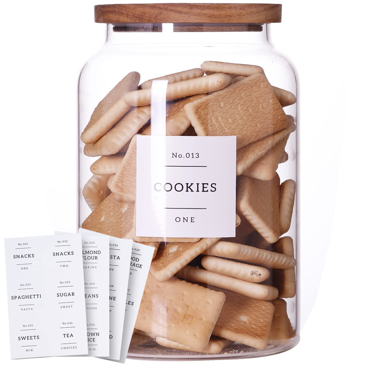 • Q: Does the jar come with any labels? A: Yes, the jar comes with 42 preprinted kitchen waterproof pantry labels to help you organize your food items effectively.