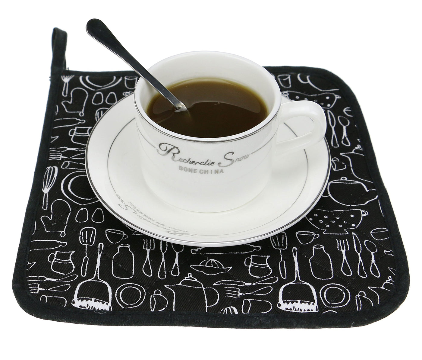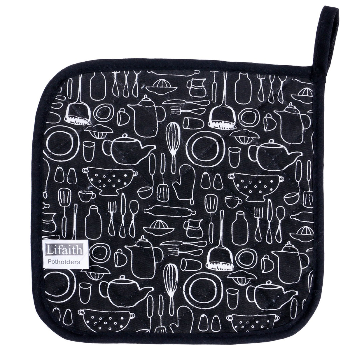 • Q: What material are the potholders made of? A: The potholders are made from 100% cotton, providing durability and heat resistance.
