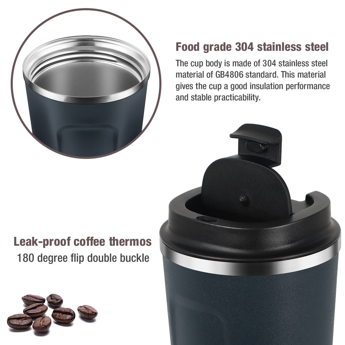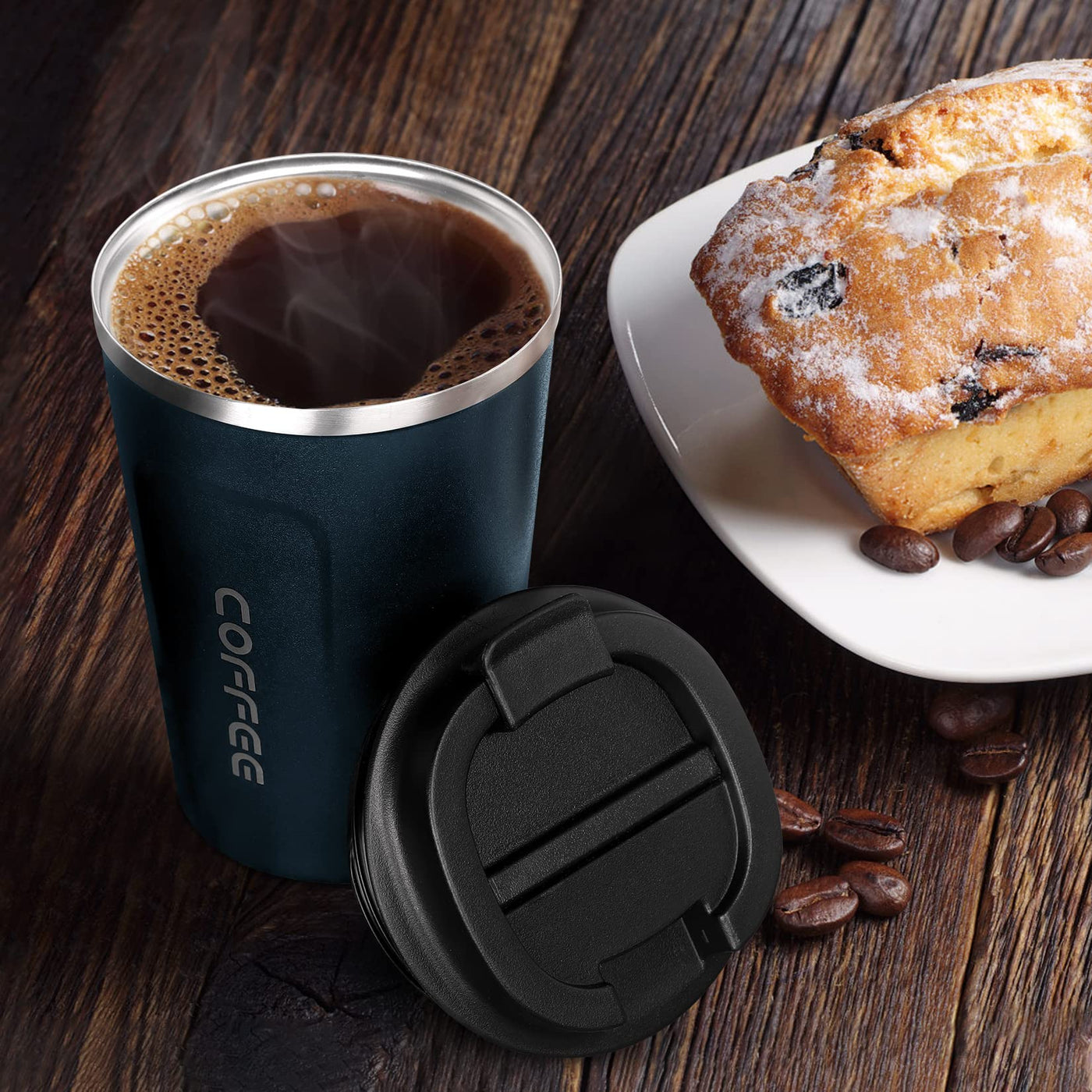 12Oz (380Ml) Vacuum Insulated Travel Mug, Smilatte Leakproof Double Wall Stainless Steel Reusable Coffee Cup With Lid For Hot &
