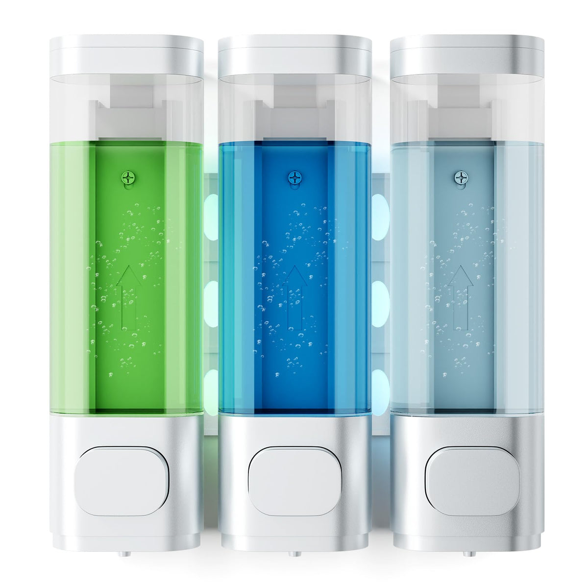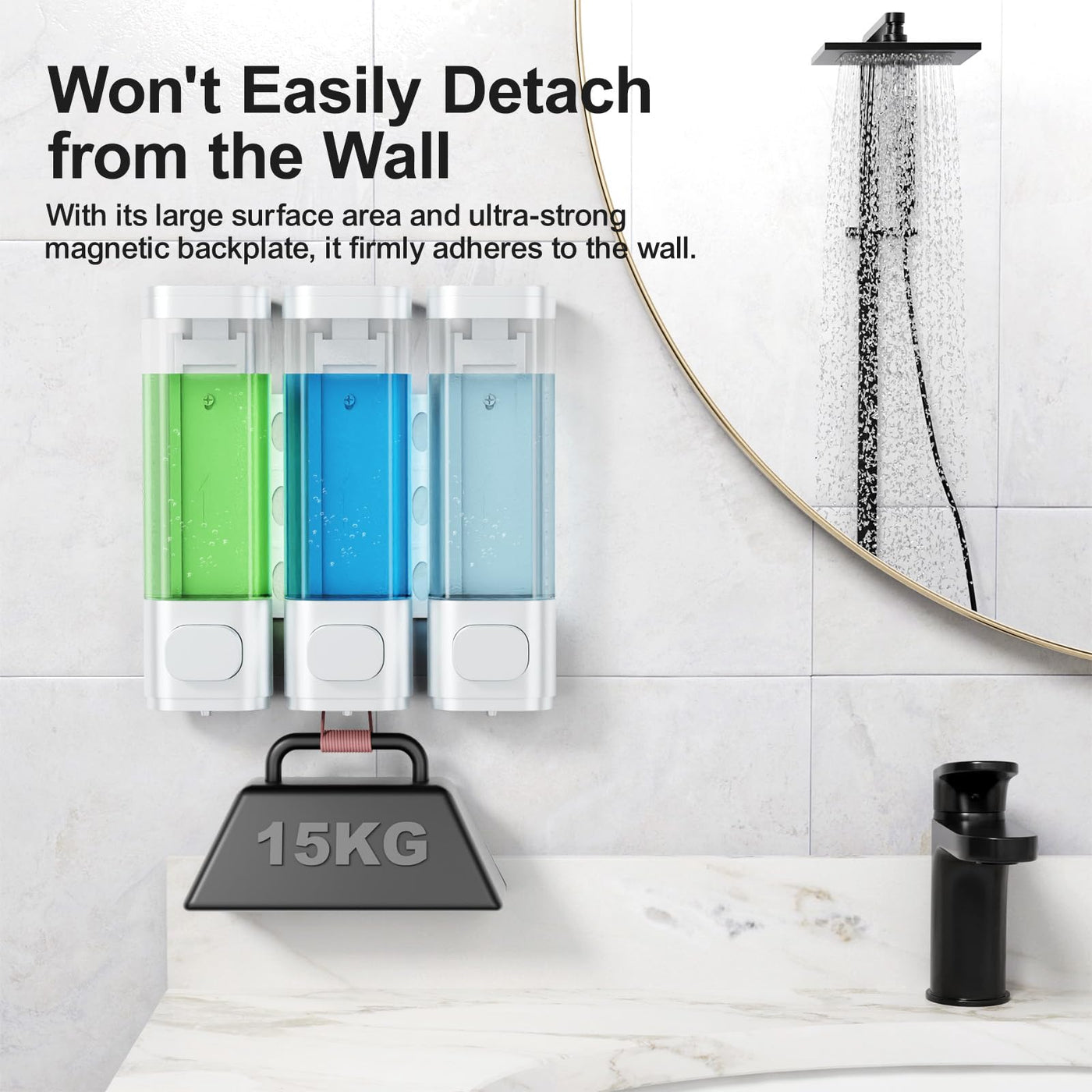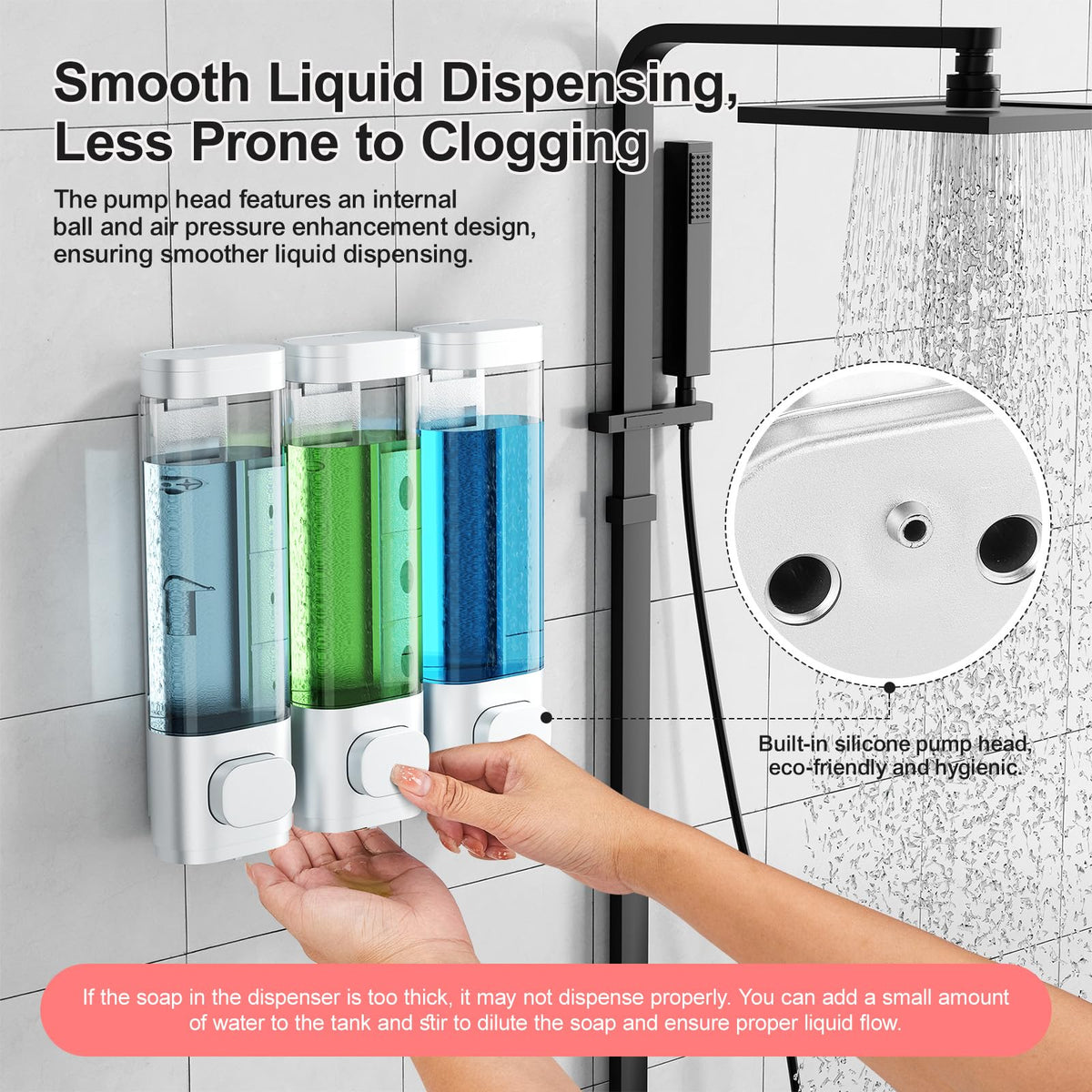 3-Chamber Wall Mounted Shampoo And Conditioner Dispenser,300Ml Each Shower Soap Dispenser,Easy Refill,No Drip,Ideal For Shampoo,