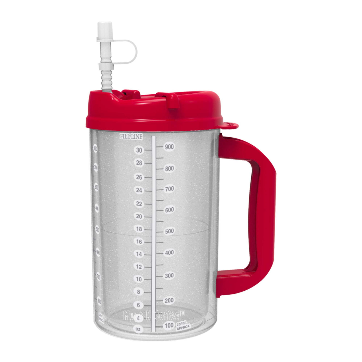 32 Oz Red Double Wall Insulated Hospital Mug - Cold Drink Mug - New Swivel Lid Design - Includes 11'' Straw (1)