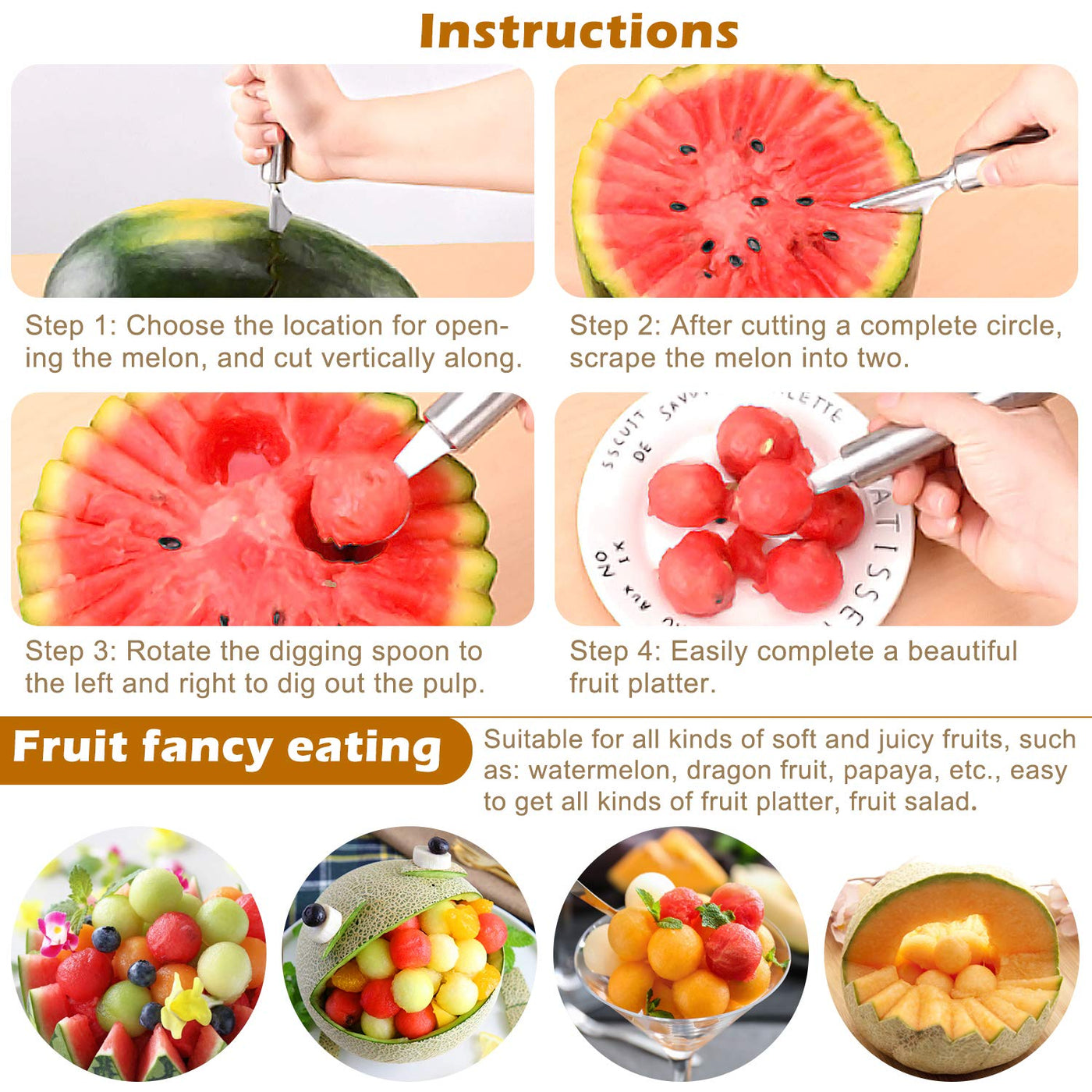 - Q: What is the size of the fruit baller scoop? A: The fruit baller scoop measures approximately 8.07 inches long and 1.18 inches wide.