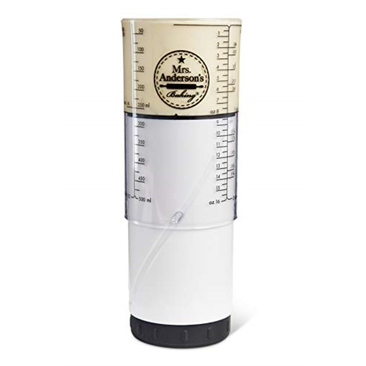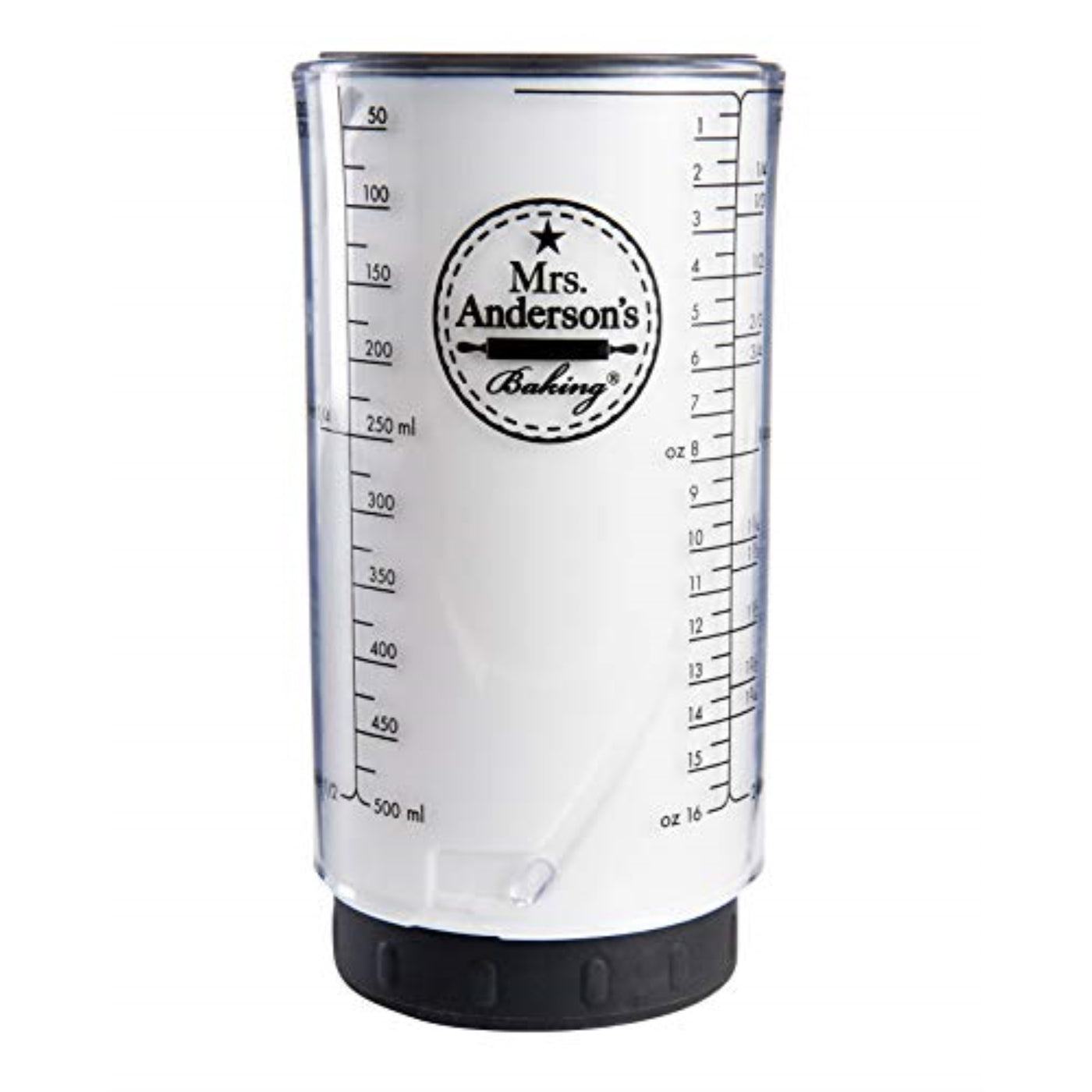 • Q: What is the capacity of Mrs. Anderson's Baking Adjustable Liquid Dry Measuring Cup? A: The measuring cup has a capacity of 16.5 ounces, which is equivalent to 2 cups.
