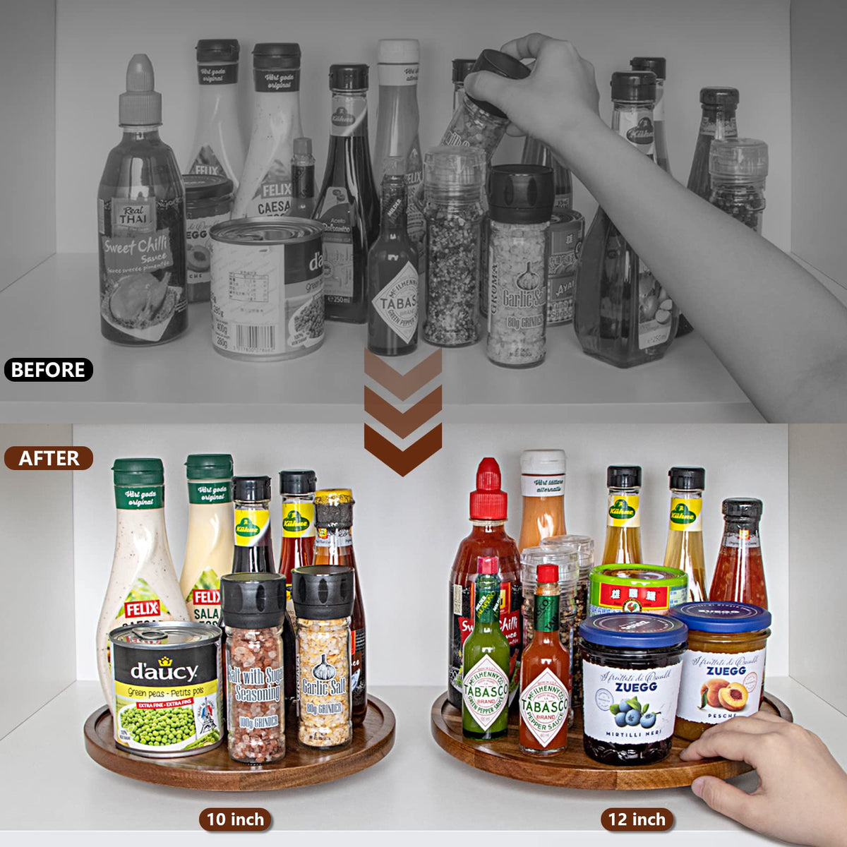 Anboxit Lazy Susan Organizer For Table, 12 Inch Wooden Lazy Susan Turntable For Cabinet, Acacia Wood Turntable Kitchen Spice Rac