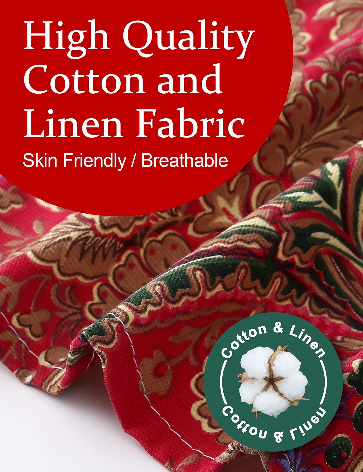 Apronner Cotton Linen Baking Plus Size Aprons For Women With Pockets Kitchen Cooking Red Pomegranate