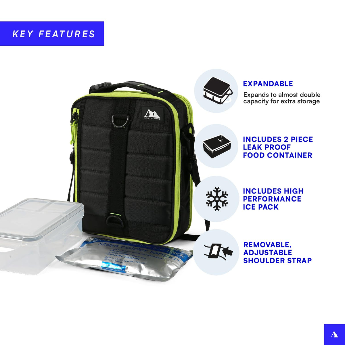 • Q: Does this lunch pack include any accessories? A: Yes, it comes with a two-piece leak proof food container and a high performance ice pack.