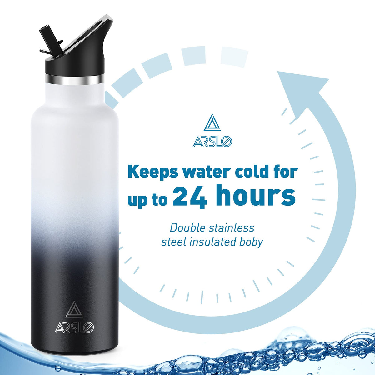 Arslo Stainless Steel Double Wall Water Bottles 25Oz, Vacuum Insulated Bottle With Straw Lid, Insulated Water Bottle Keeps Water