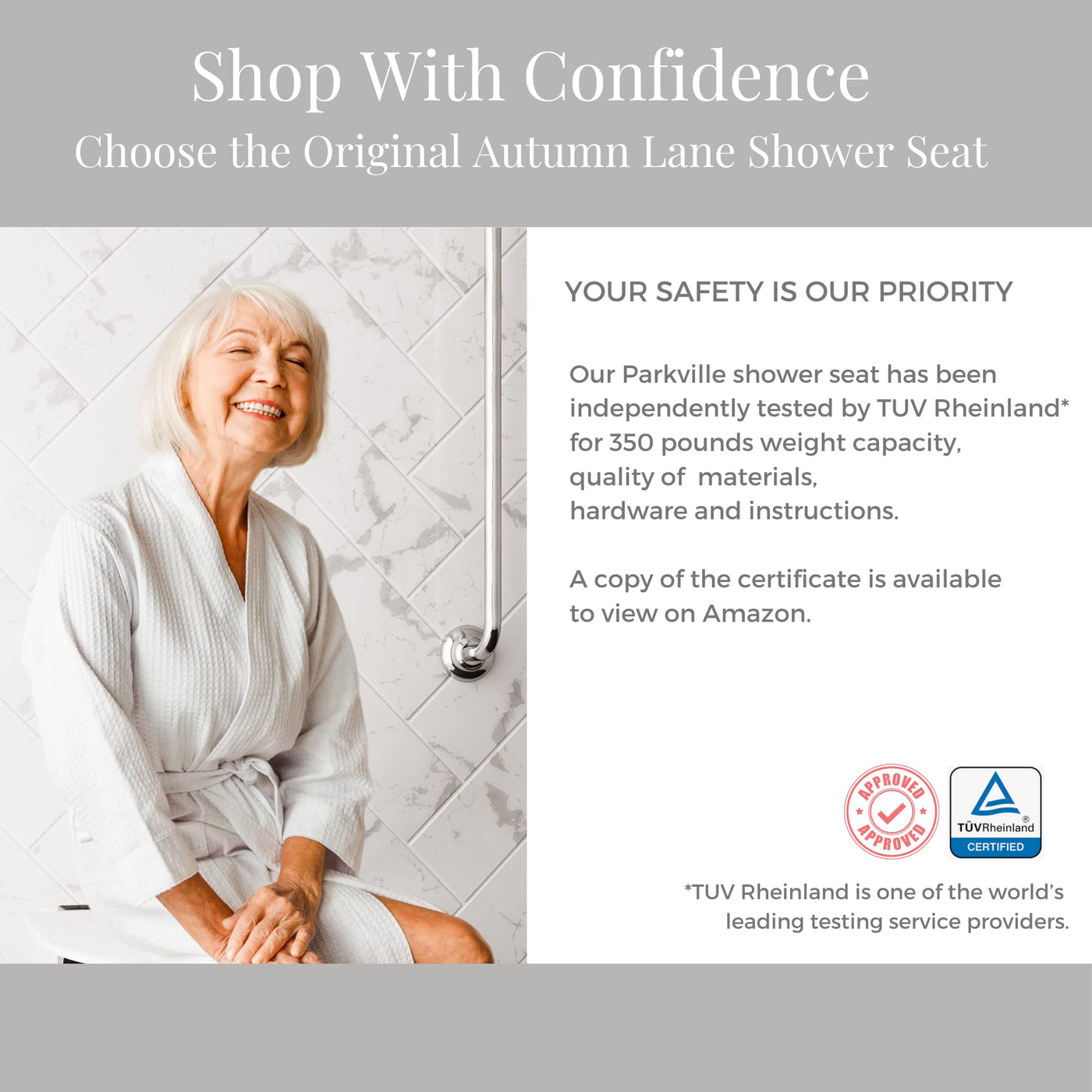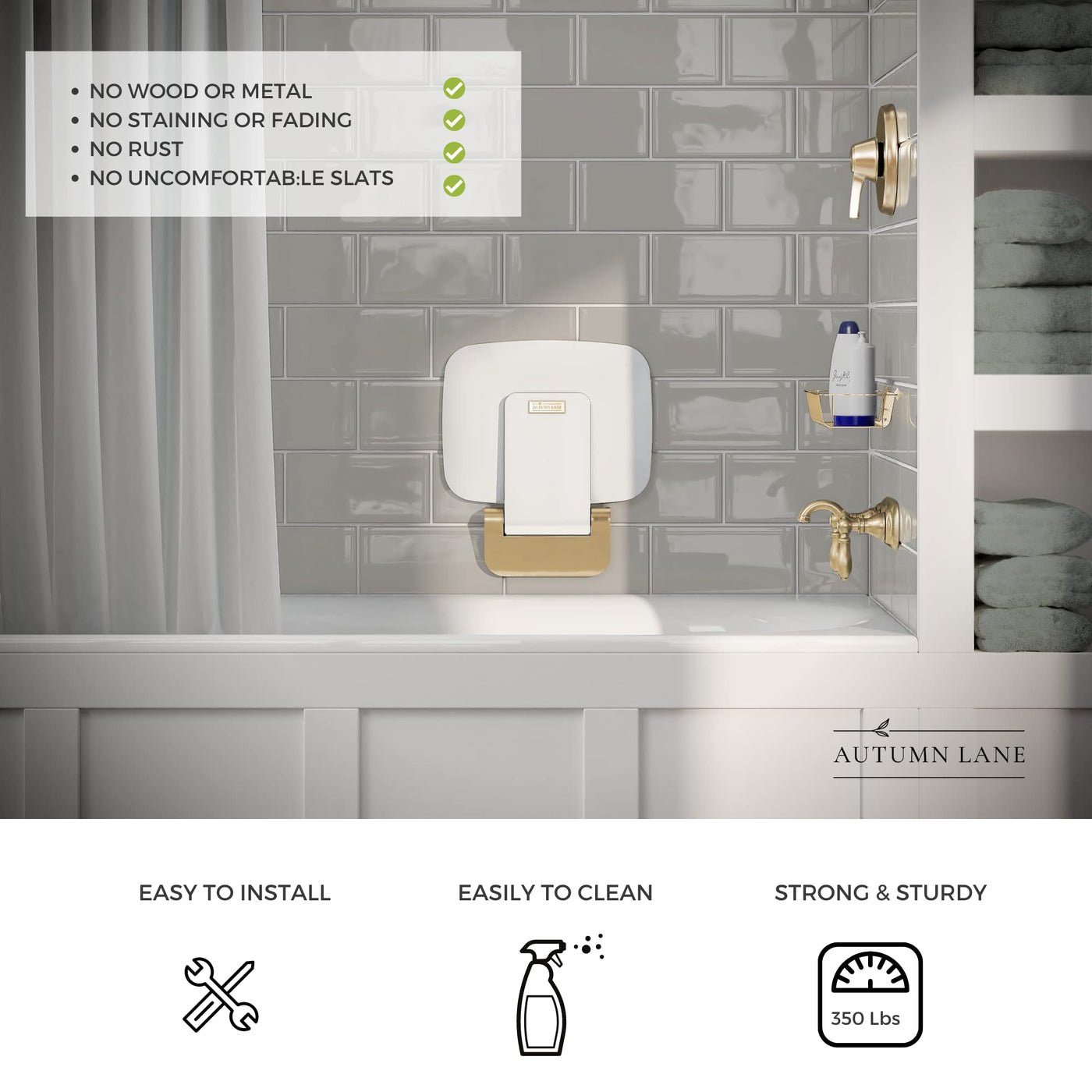 Autumn Lane Folding Shower Seat Wall Mounted- Up To 350Lbs, Secure Folding Shower Bench, Space Saving Mounted Shower Seat, Luxur