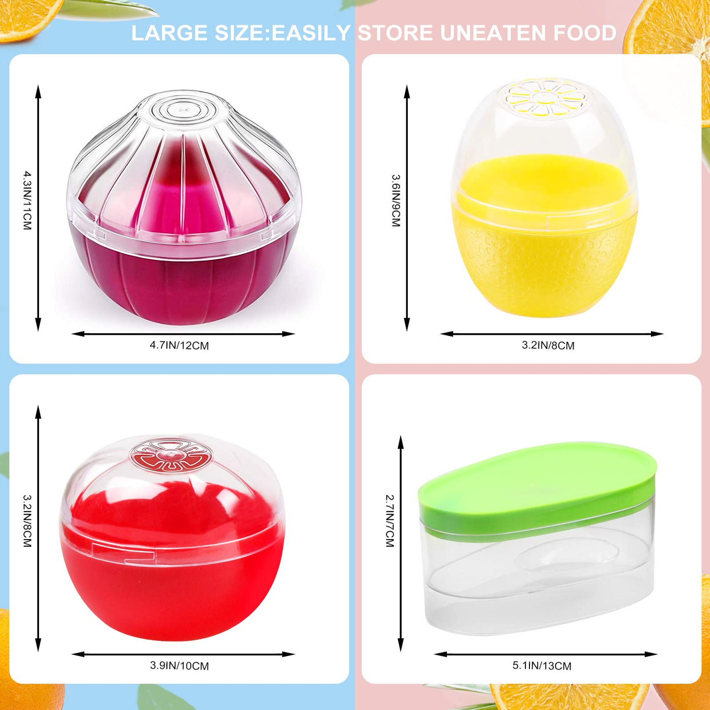 Ayccnh Fruit And Vegetable Storage Containers For Fridge 4 Piece Set, Onion, Lemon, Tomato And Avocado Saver/Holder/Keeper