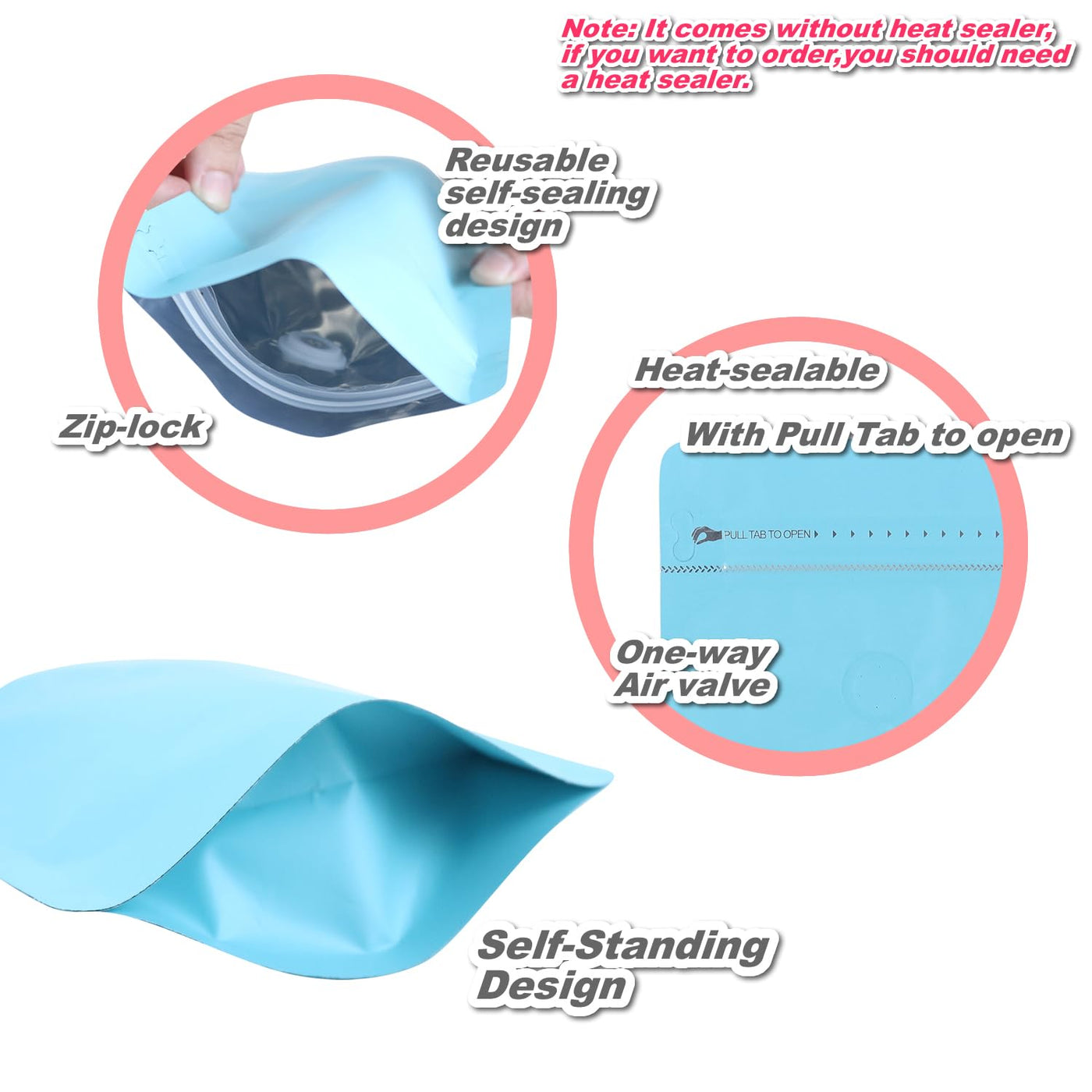 Baaggnaa 150 Pack High Barrier Stand-Up Coffee Bean Bags With Vented Valve, Matte Metallic Ziplock, Heat-Sealable And Resealable