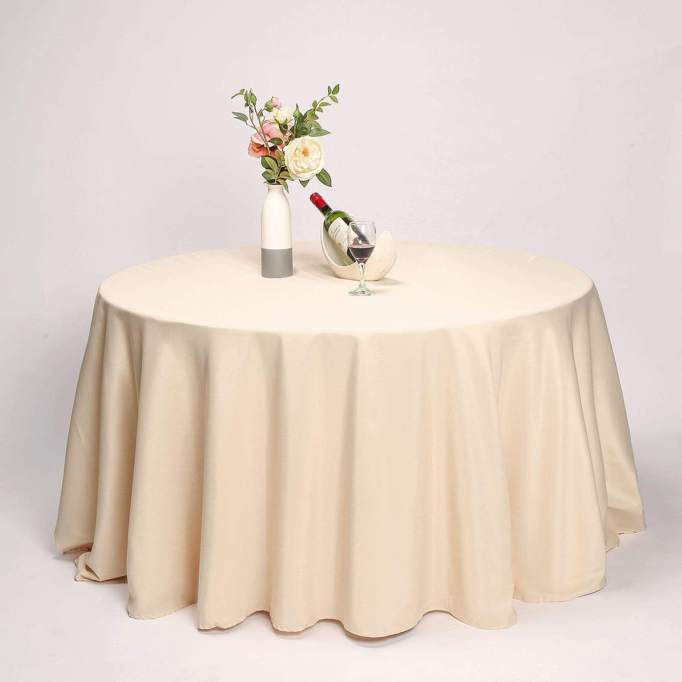 Balsacircle 132 Inch Beige Round Polyester Tablecloth Fabric Table Cover Linens For Wedding Party Banquet Reception Events Kitch
