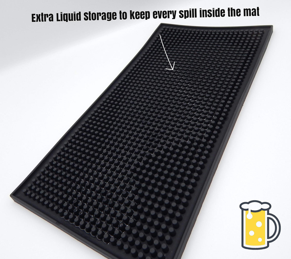 - Q: How does the Bar Mat protect my serving tray? A: The rubber couching of the Bar Mat absorbs spills and water, protecting your serving tray from unwanted messes.