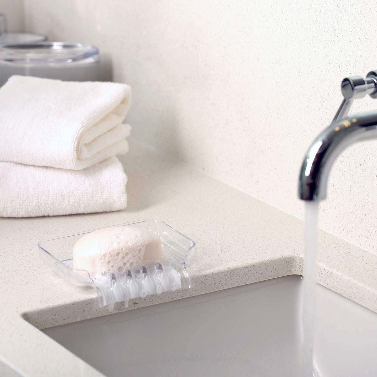 • Q: How does the TRICKLE Tray help in drying sponges and soaps? A: The TRICKLE Tray features channels that allow air flow, which aids in the drying process of sponges and soaps, keeping them dry and preventing them from becoming soft and sticky.