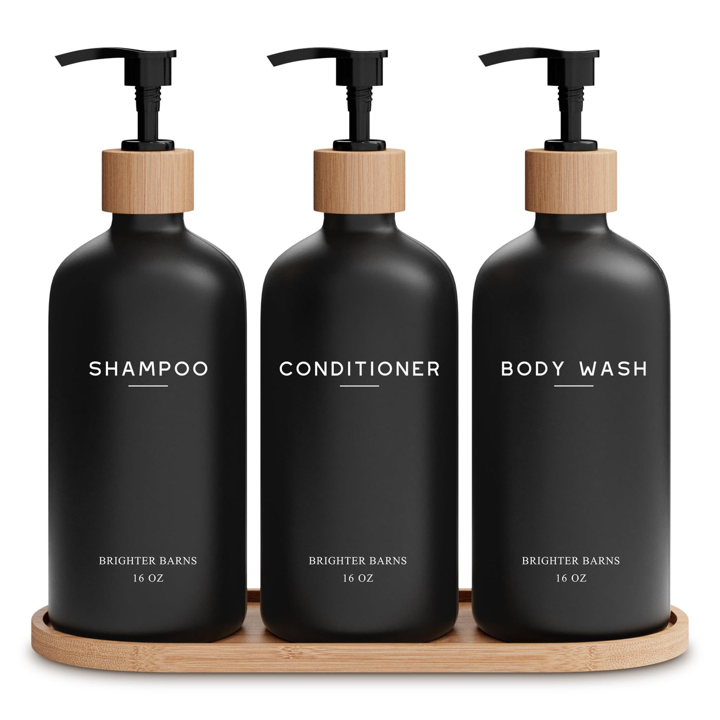 Black Shampoo And Conditioner Dispenser Set By Brighter Barns - Body Wash, Shampoo Dispenser For Shower With Pump - Refillable P