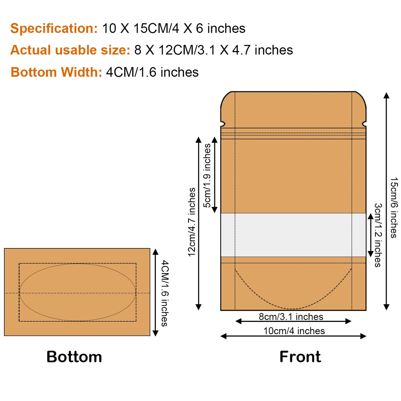 - Q: What are the dimensions of the Blisstime Kraft Paper Stand Up Pouch Bags? A: The dimensions of each bag are 4 inches by 6 inches.