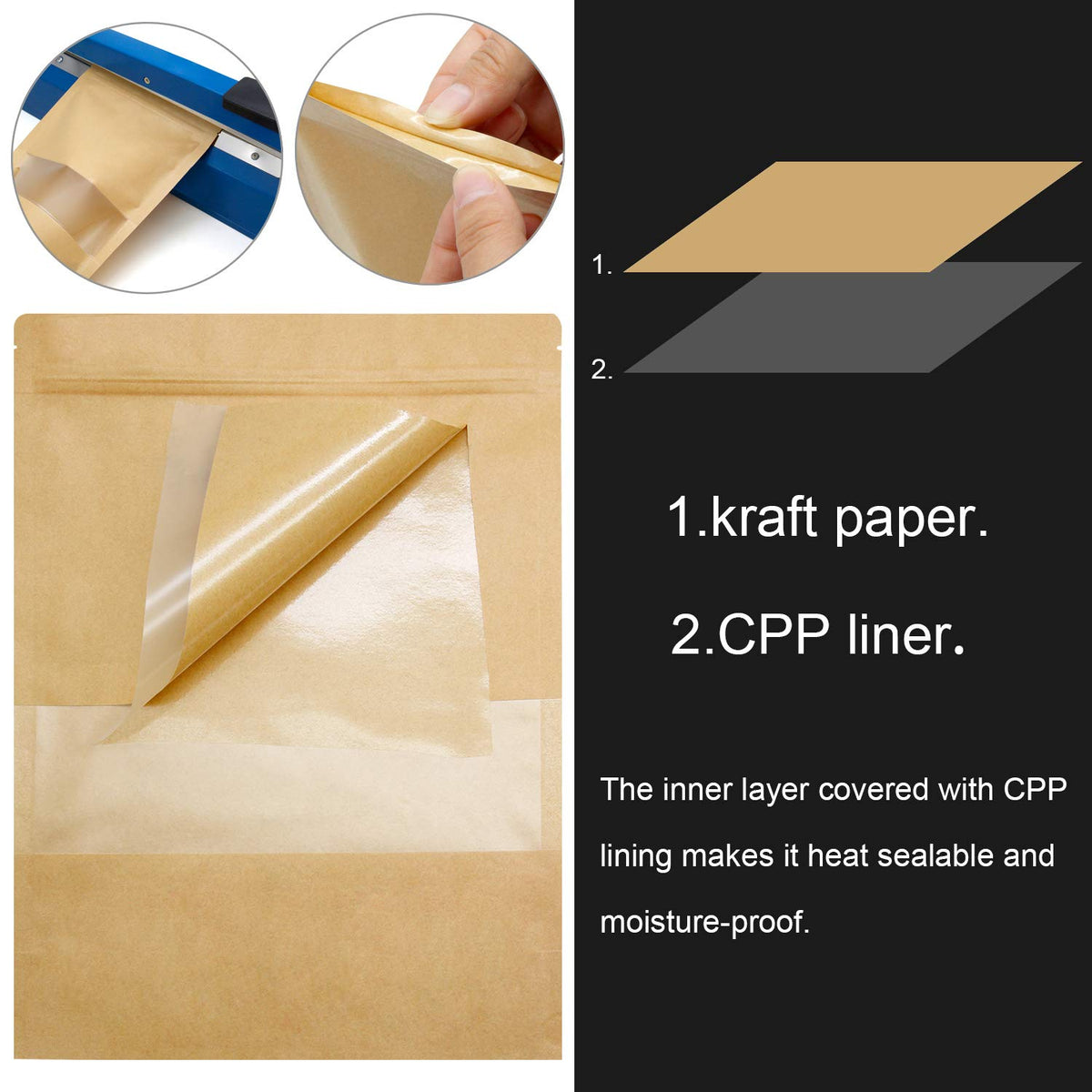 Blisstime 50 Pack Kraft Stand Up Zip Lock Pouch Bags, Resealable Bag With Transparent Window And Tear Notch For Multipurpose Sto