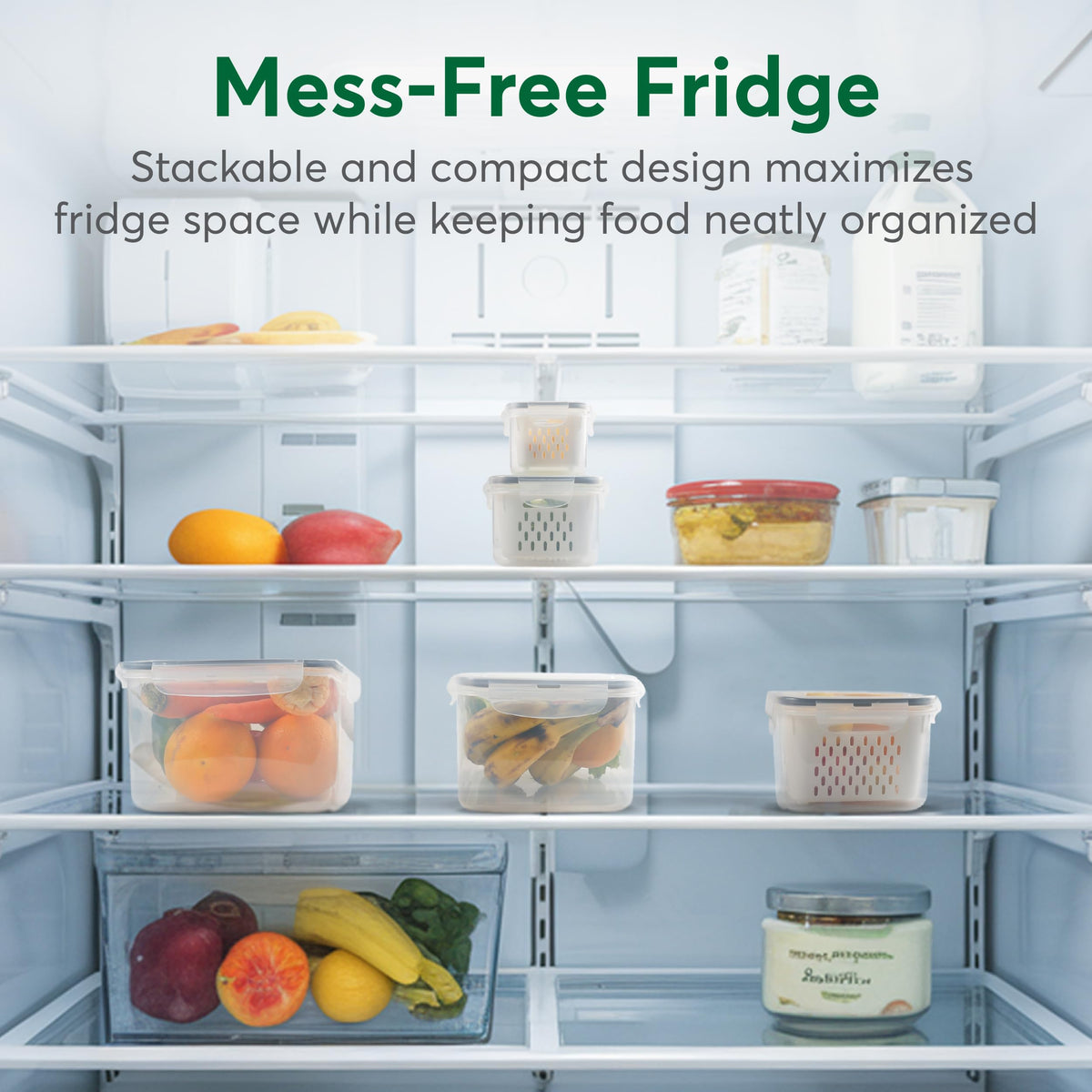 Breezyhome 5 Pcs Fruit Storage Containers For Fridge With Colanders Dishwasher Safe, Leakproof Fruit And Vegetable Storage Bpa-F