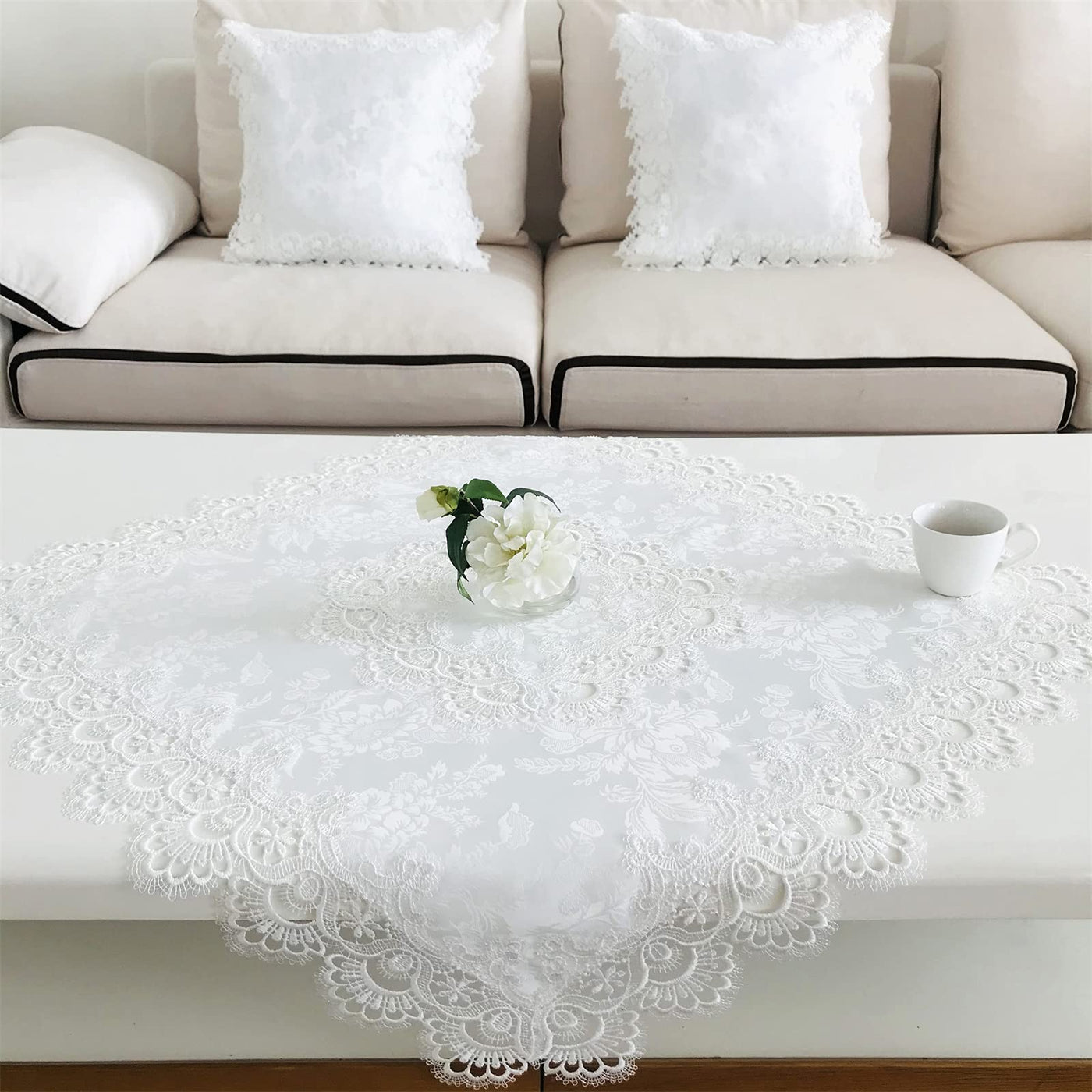 Breksdat Round Tablecloth White Lace 70 For Wedding Dining Tables Banquet Holiday Party Washable Fabric Carnation Flower Decor