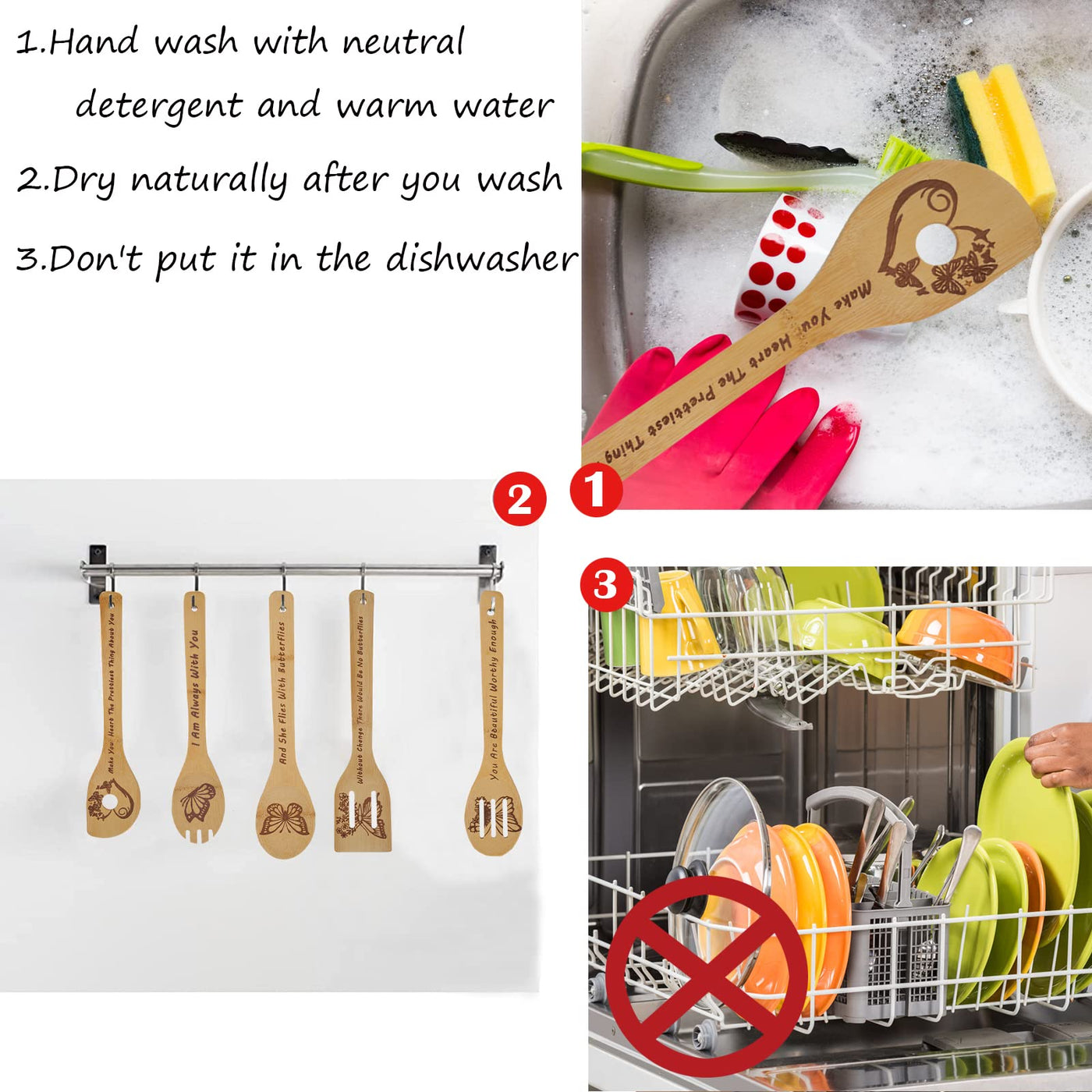 Butterfly Wooden Cooking Spoons Set Of 5,Butterfly Gift,Butterfly Lovers Gifts,Butterfly Kitchen Decor,Bamboo Cooking Spoons Far