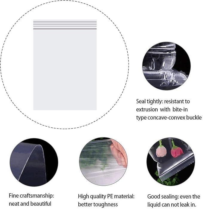 Pack Of 100 Reusable Plastic Ziplock Covers For Packaging And Storing. Packaging Covers In Size Of 8 X 10 Inches, Perfect For Storing Groceries, Toys, Crafts, Packaging And Storing Any Stuff At Home, Office Or On Travel.