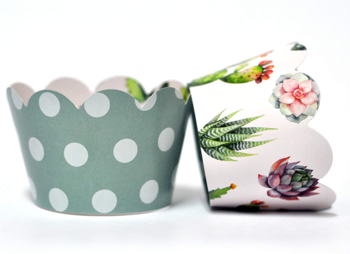 Cactus And Succulent Cupcake Wrappers For Kids Birthday Parties, Baby Showers, Bridal Showers, And Weddings. Set Of 24 Reversibl