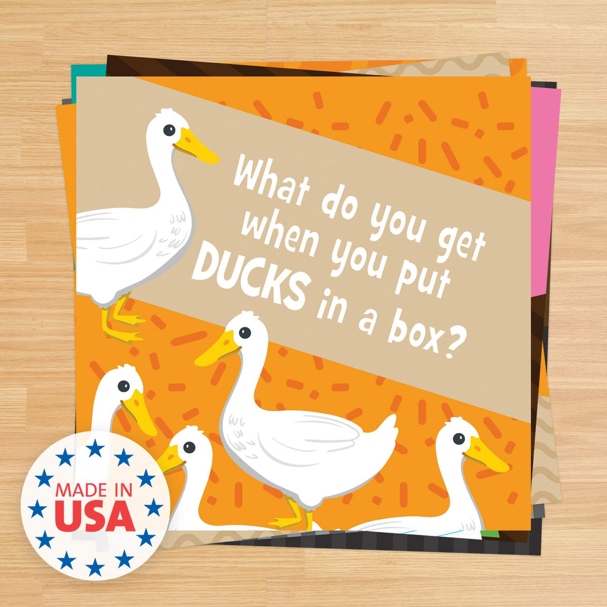 - Q: What material are the joke cards printed on? A: The joke cards are printed on high-quality stock for durability.