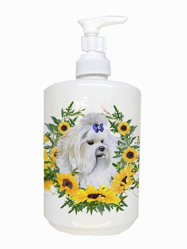 Caroline'S Treasures Ck2843Soap Maltese In Sunflowers Ceramic Soap Dispenser Hand Soap Dispenser Pump Bottles For Bathroom Kitch
