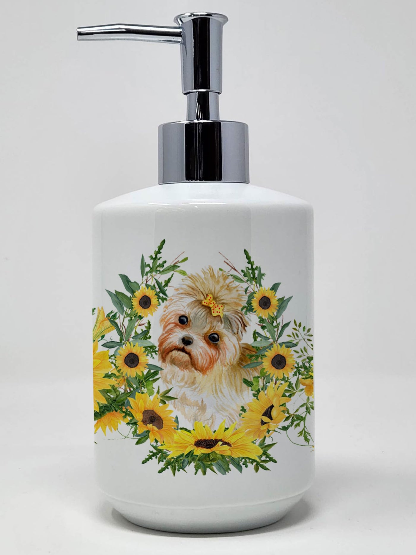 Caroline'S Treasures Ck2860Soap Morkie In Sunflowers Ceramic Soap Dispenser Hand Soap Dispenser Pump Bottles For Bathroom Kitche