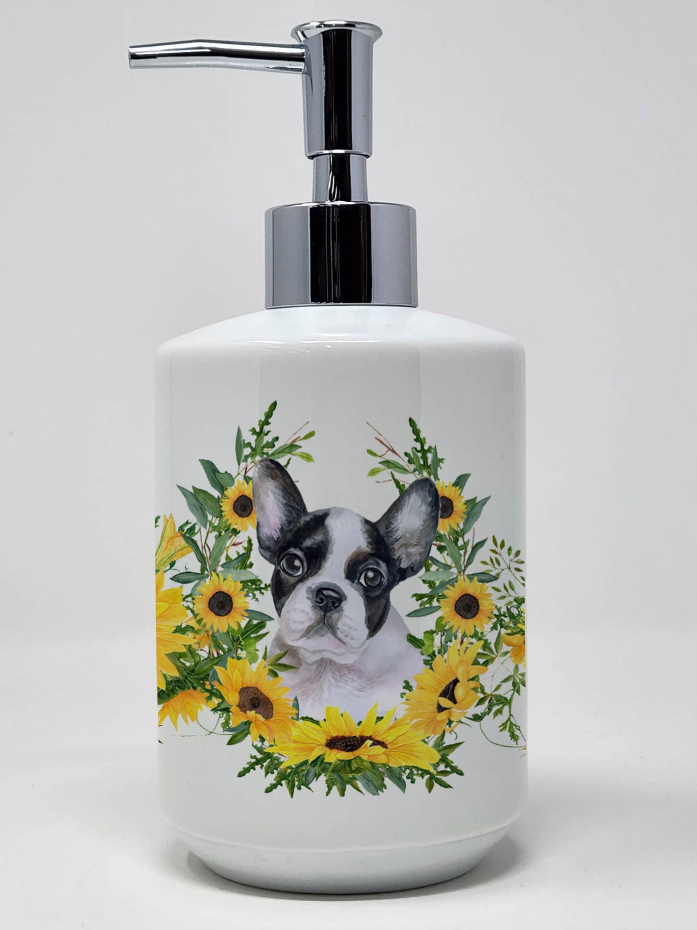 Caroline'S Treasures Ck2902Soap French Bulldog Black White In Sunflowers Ceramic Soap Dispenser Hand Soap Dispenser Pump Bottles