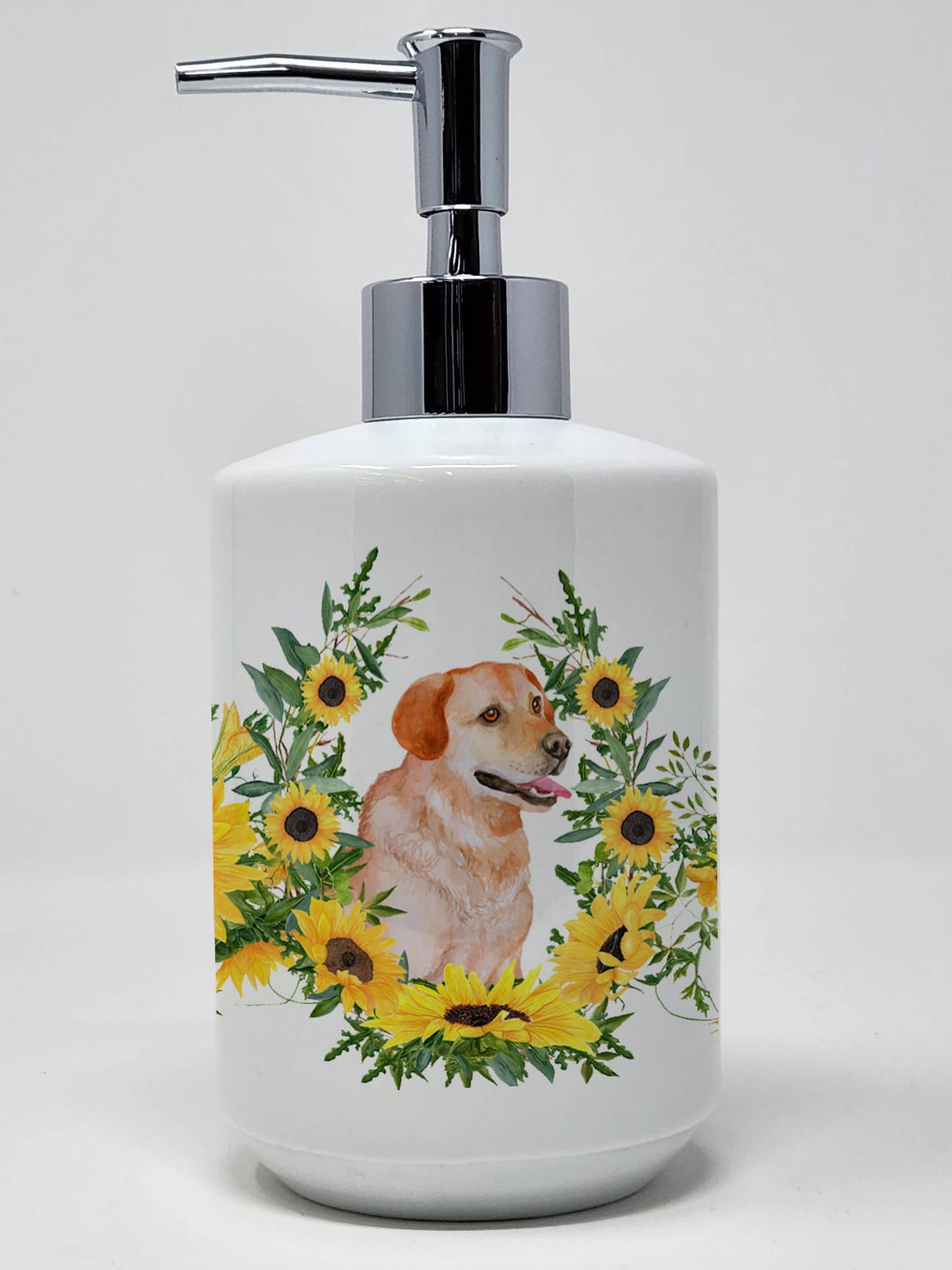 Caroline'S Treasures Ck2906Soap Labrador Retriever In Sunflowers Ceramic Soap Dispenser Hand Soap Dispenser Pump Bottles For Bat
