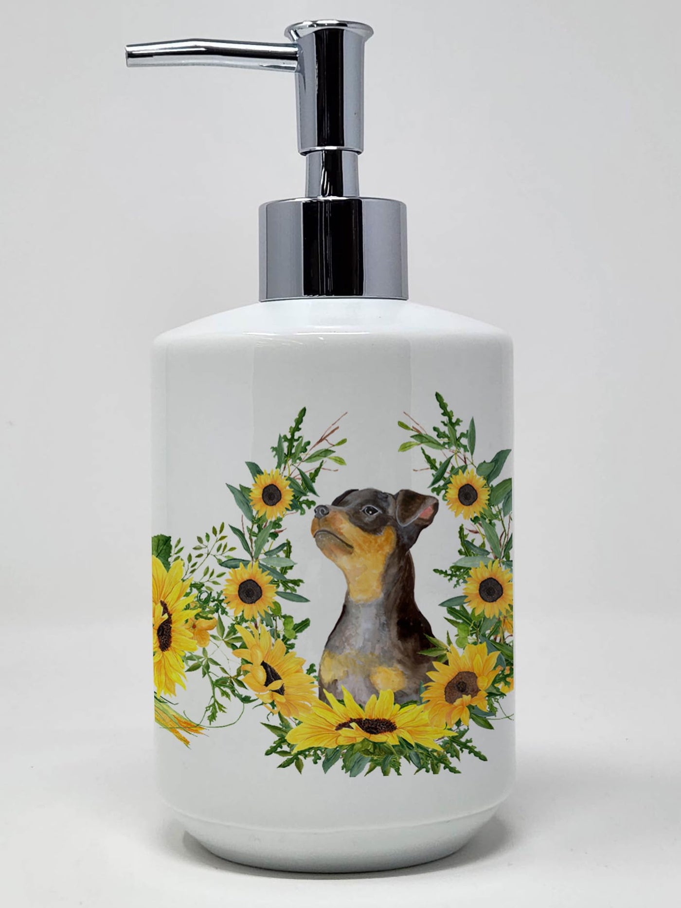 Caroline'S Treasures Ck2916Soap Miniature Pinscher #2 In Sunflowers Ceramic Soap Dispenser Hand Soap Dispenser Pump Bottles For